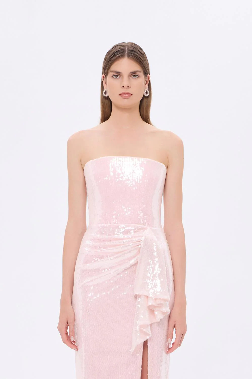BEL DRAP DETAYLI STRAPLEZ MıDı ABİYE ELBISSE - 9295C