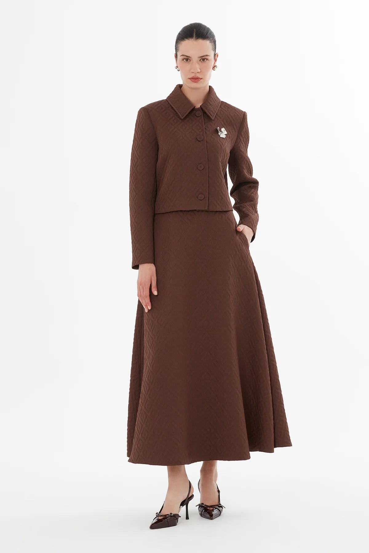 Broşlu Kısa Ceket Ve Pileli Etekli Takım