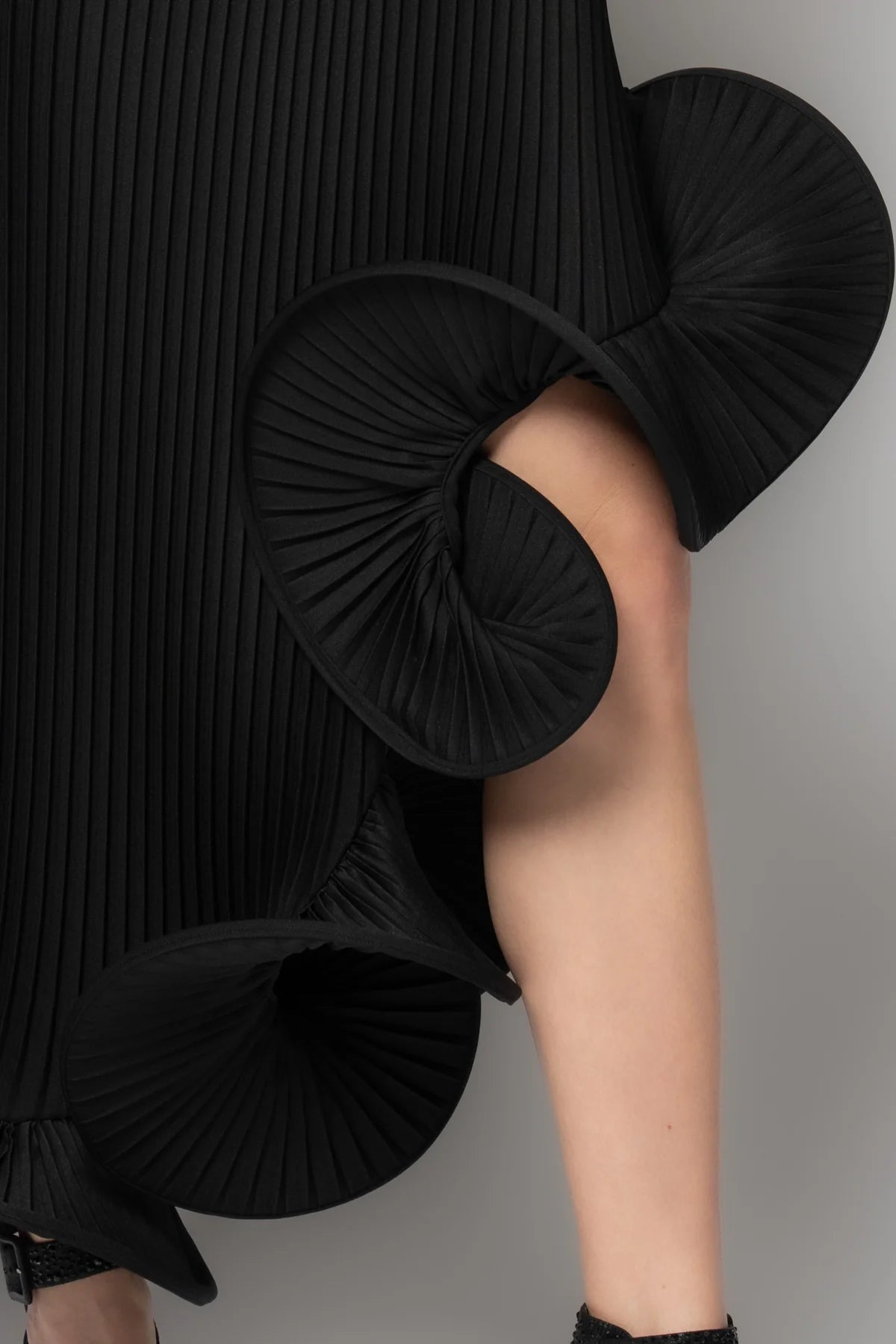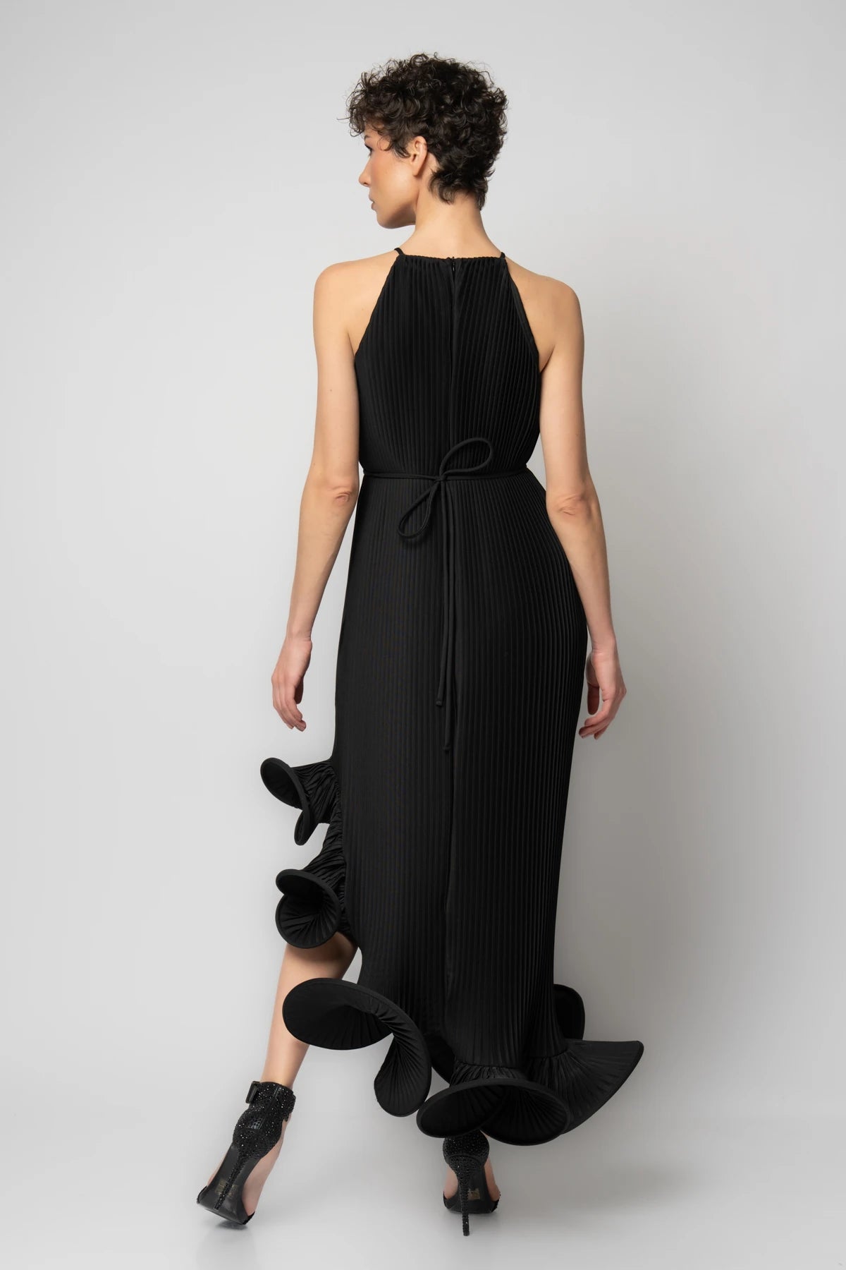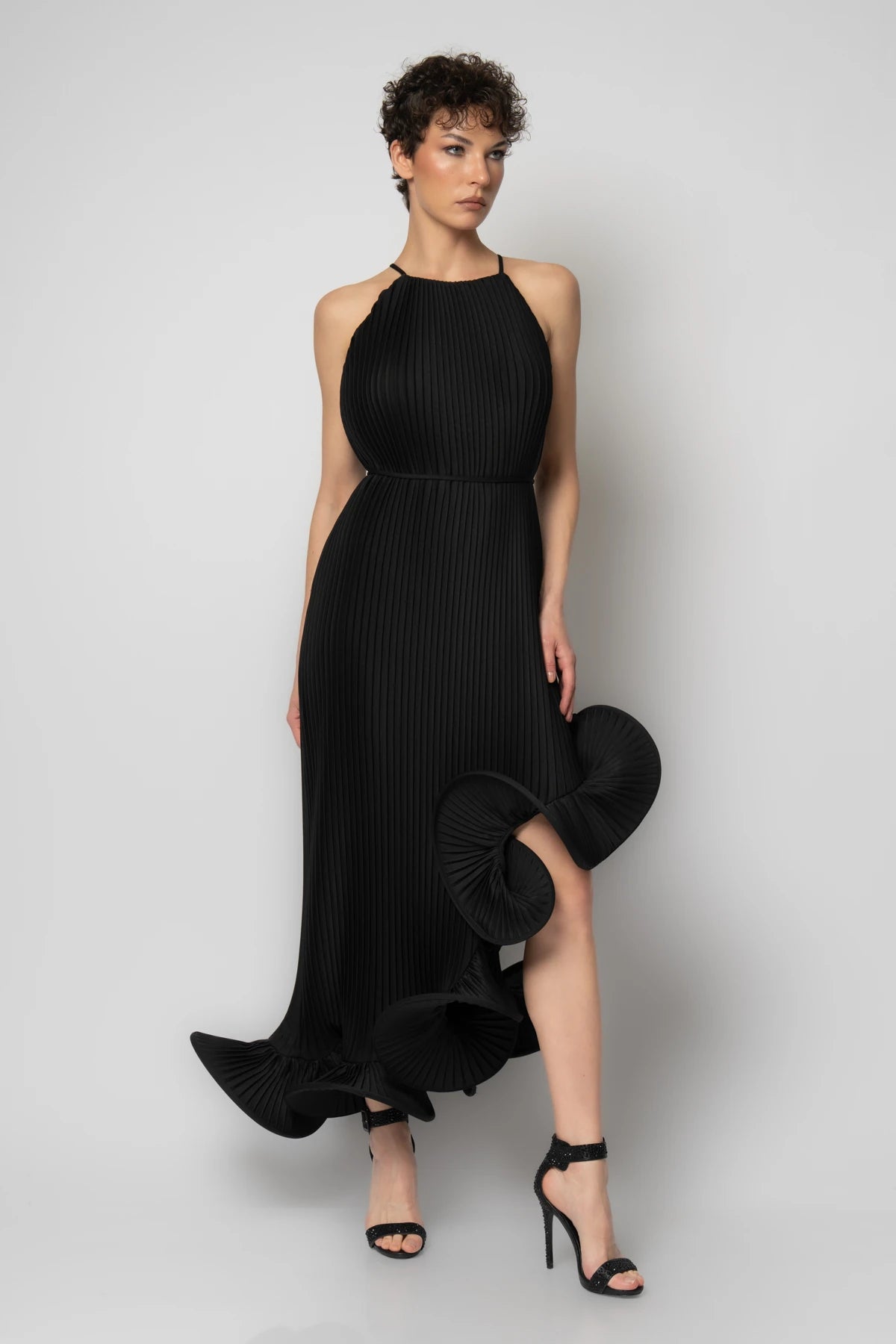 Etek ucu volanlı komple piliseli krep abiye elbise2286
