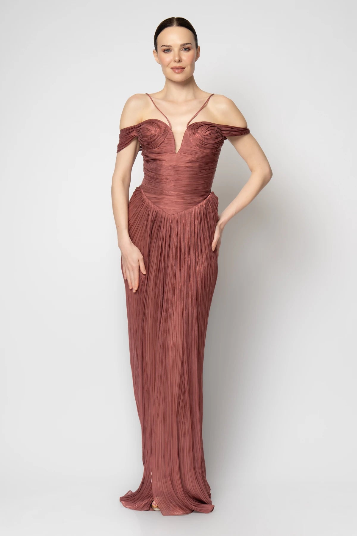 Göğsü el drapeli boyundan Askılı ince Organze abiye elbise