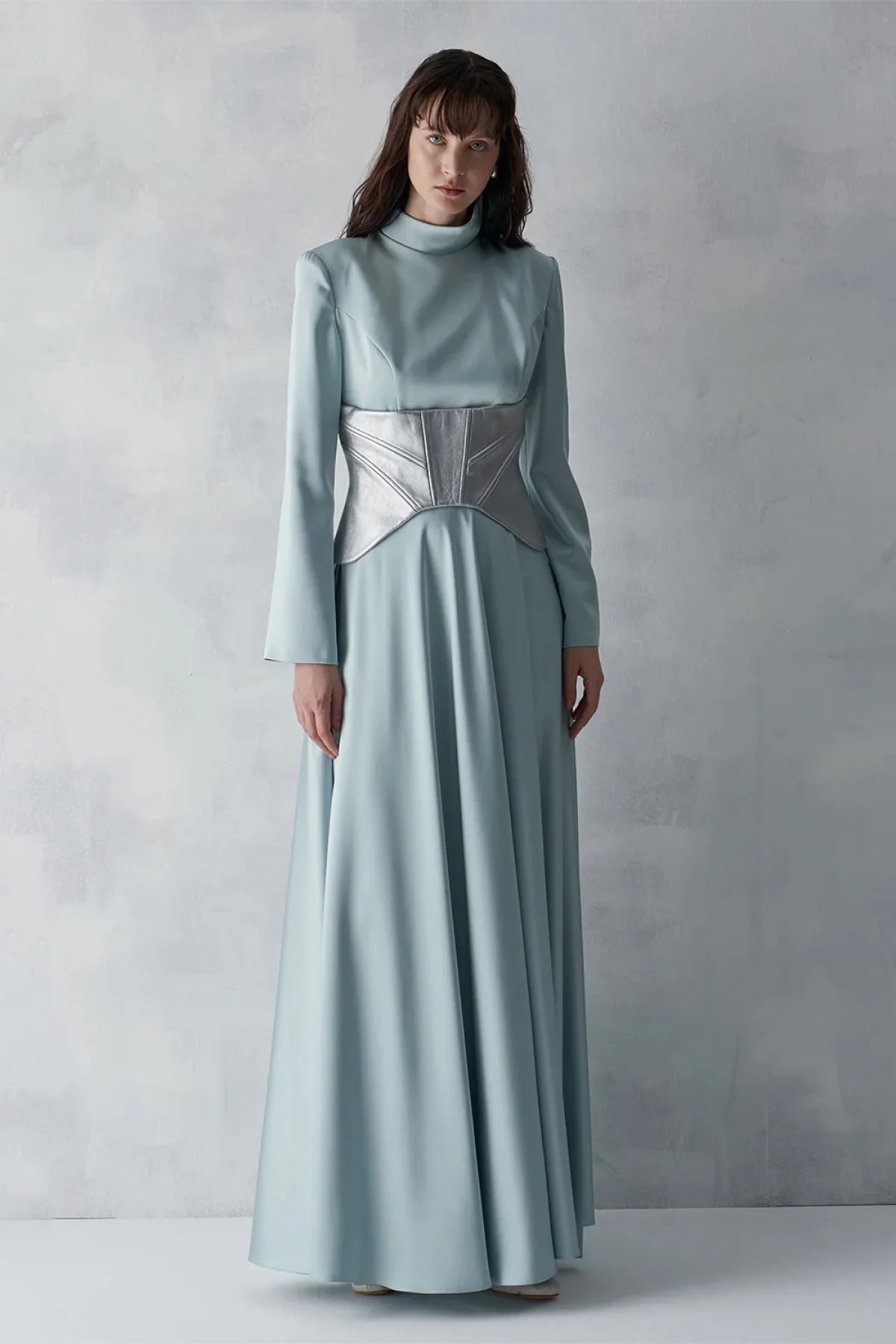 KORSAJLI SATEN UZUN ABİYE ELBİSE