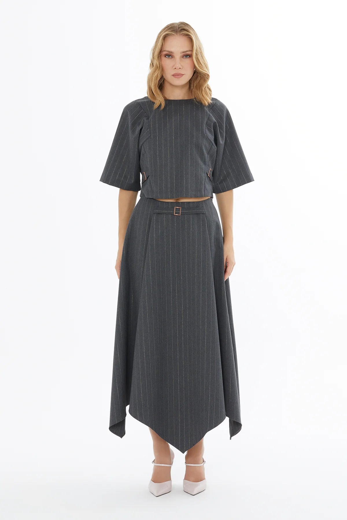 Yandan Fermuarlı Pili Dertaylı Asimetrik Uçlu Etek