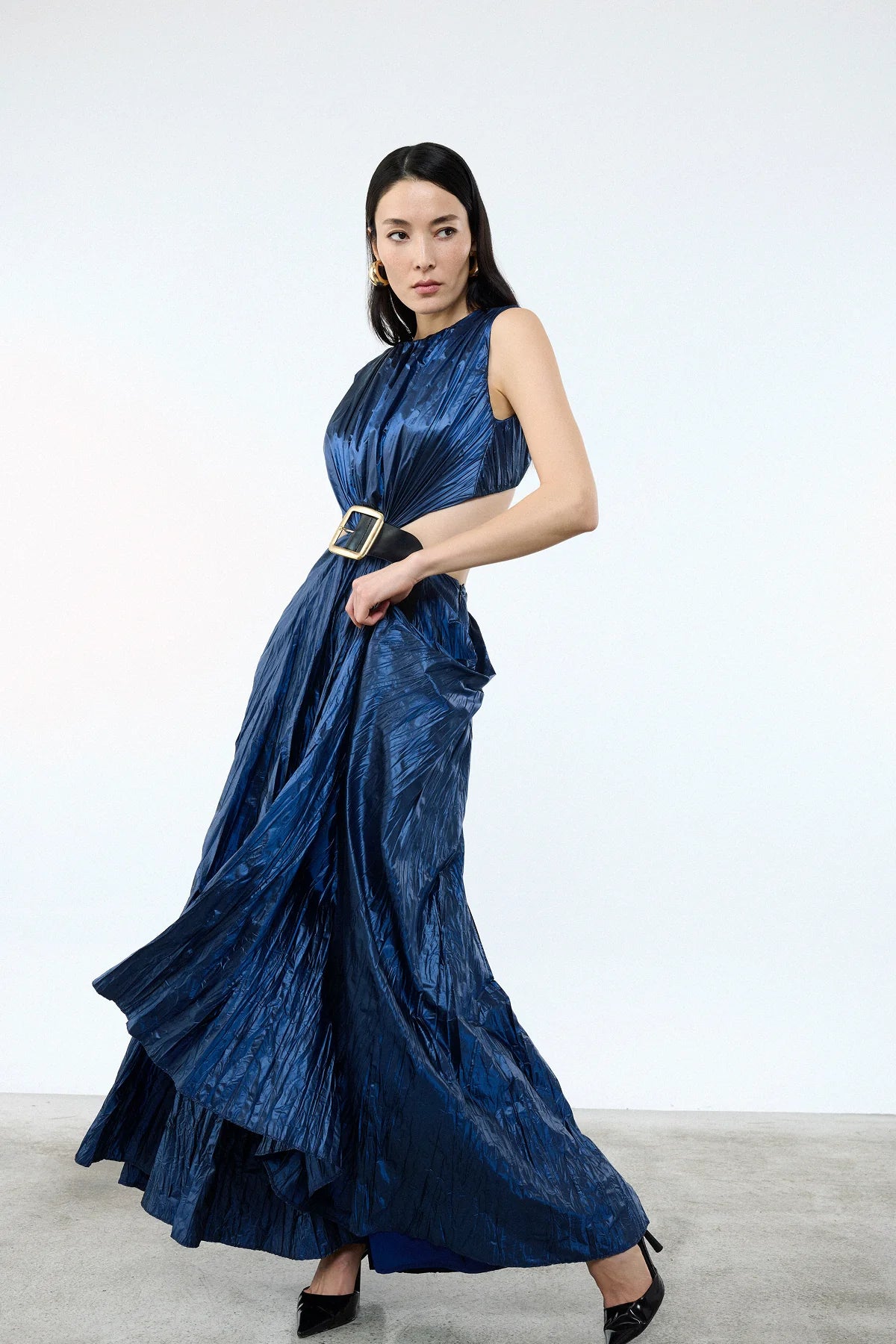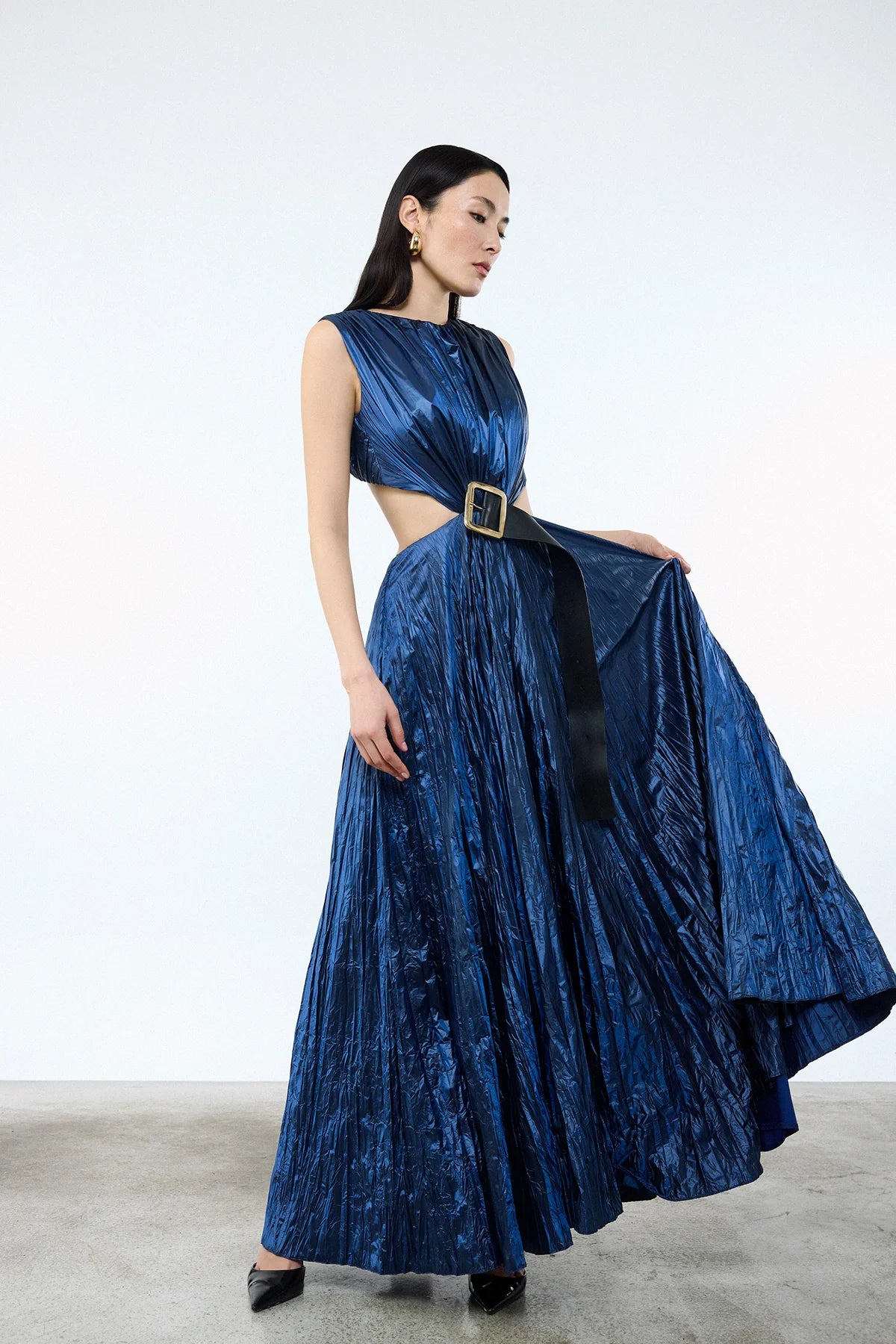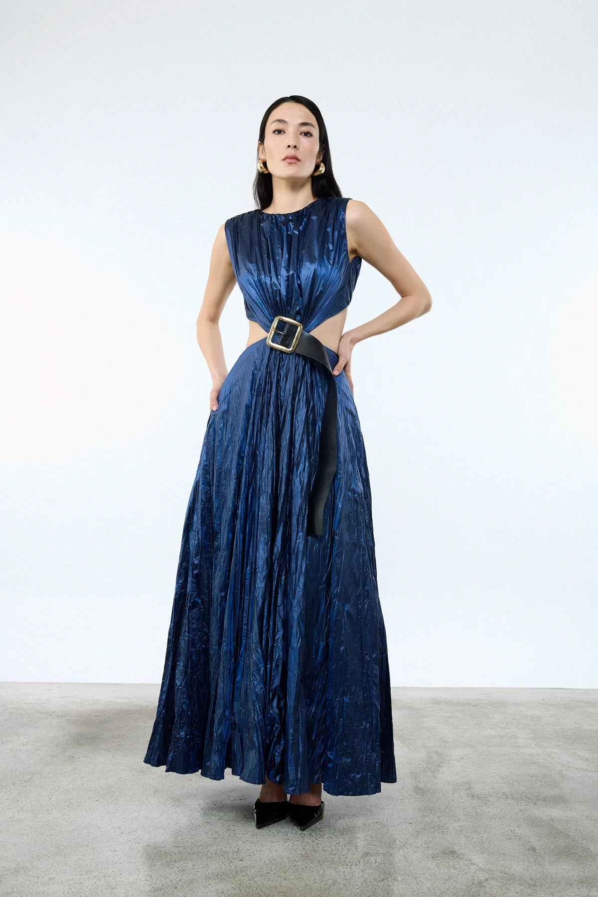 BÜZGÜLÜ KEMERLİ PİLELİ ABİYE ELBİSE 2045