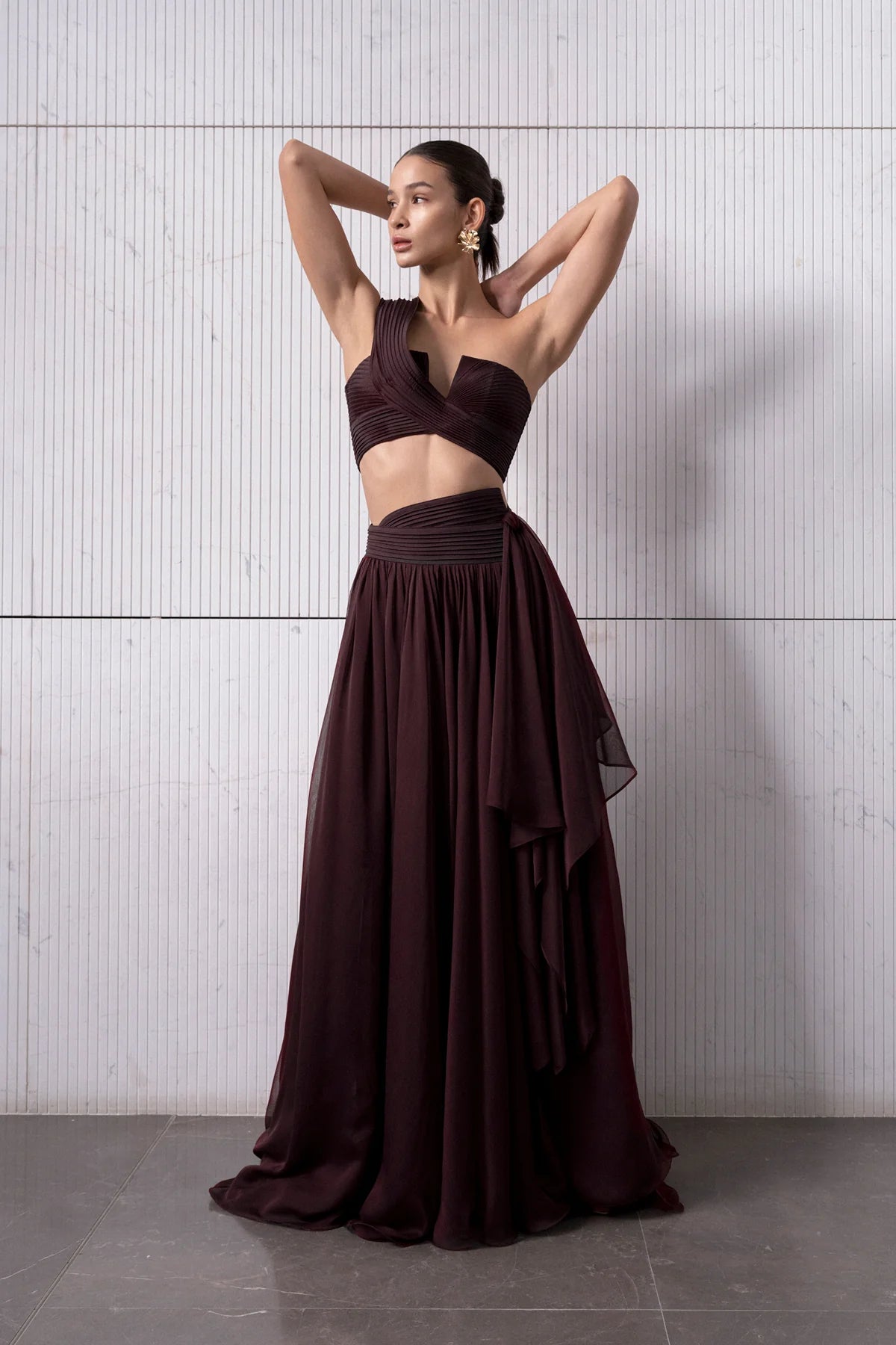 Drapeli Yırtmaç Detaylı Crop Etek Takım