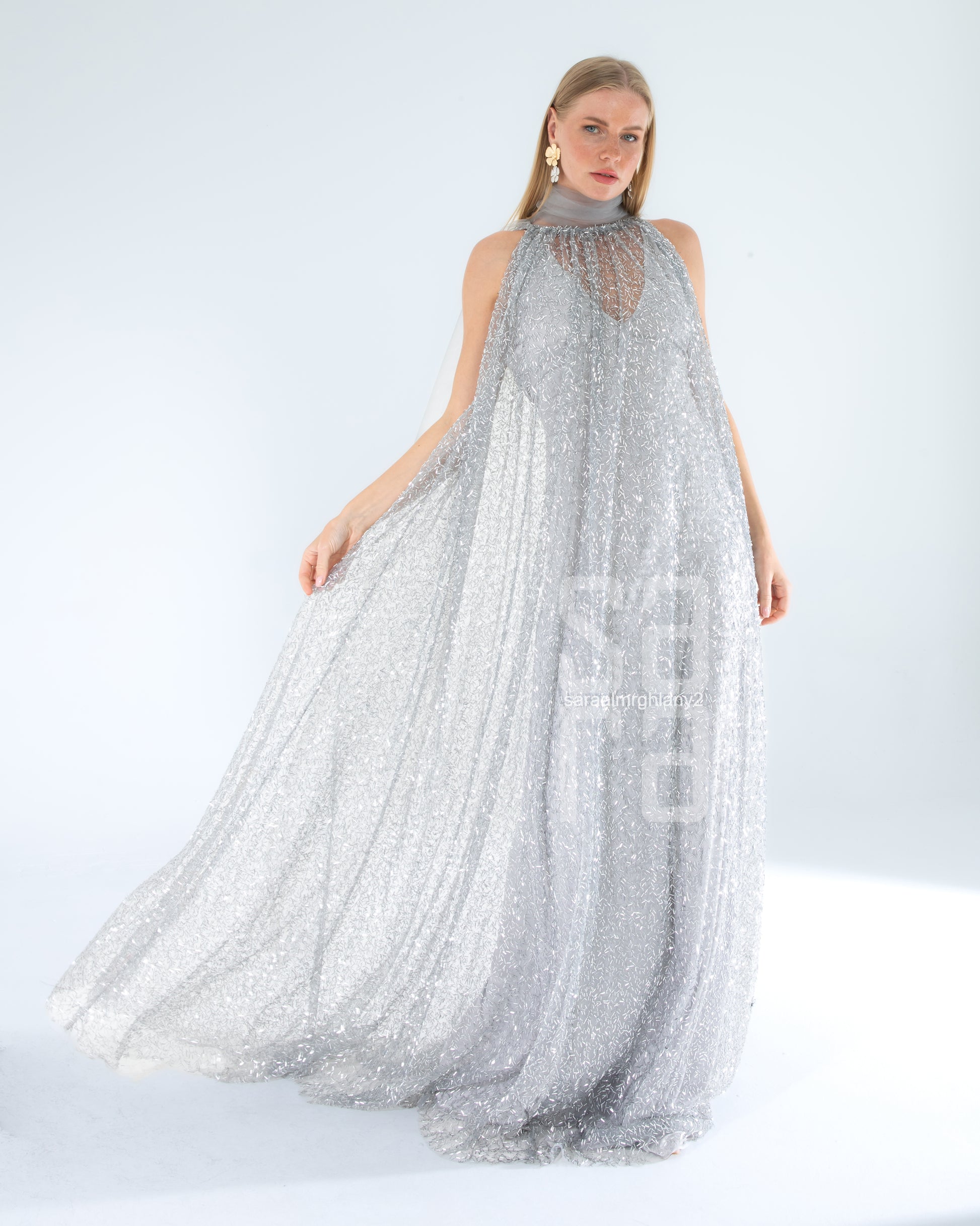 Payetli Kolsuz Uzun Abiye Elbise