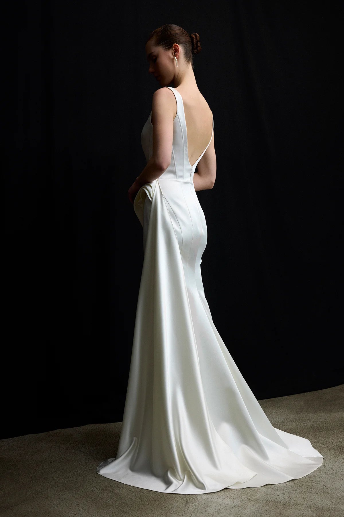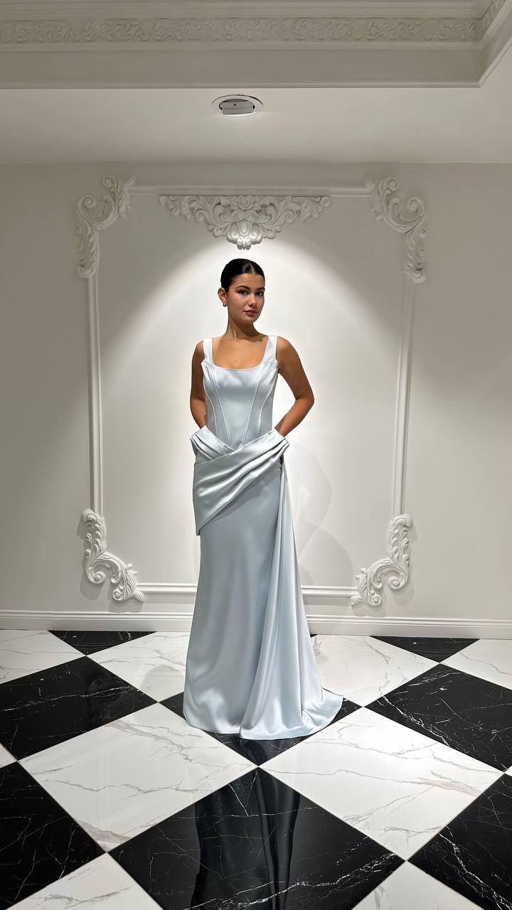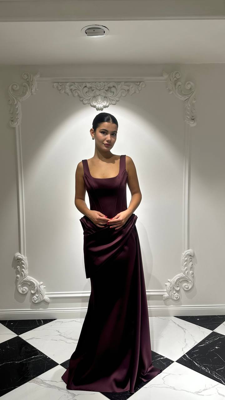 KARE YAKA VE DRAPELİ BEL DETAYLI BALIK ABİYE ELBİSE 2104