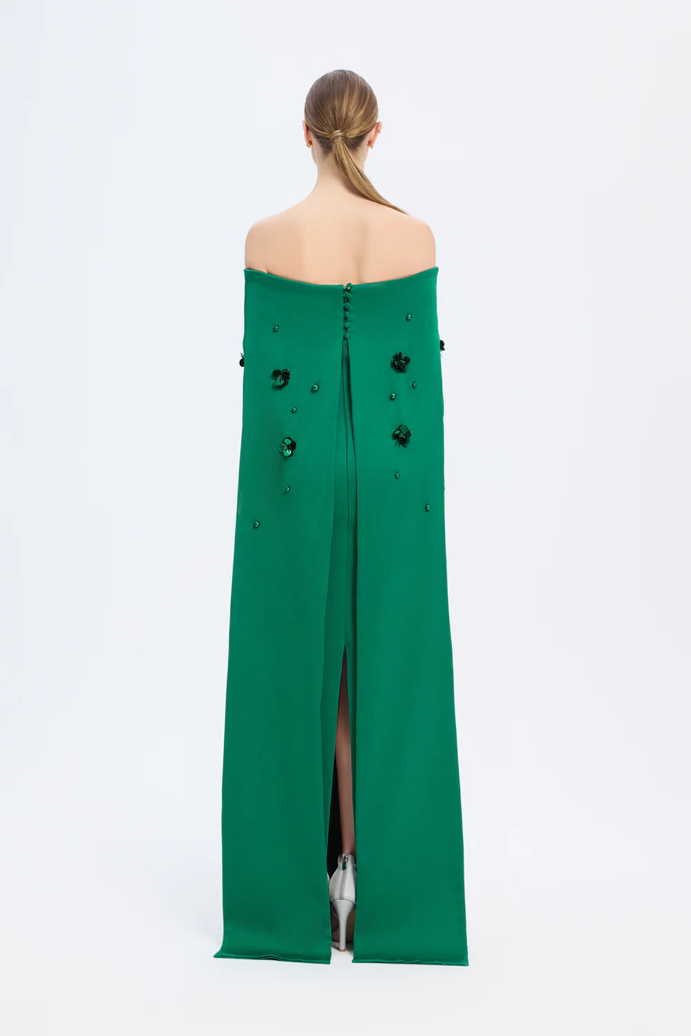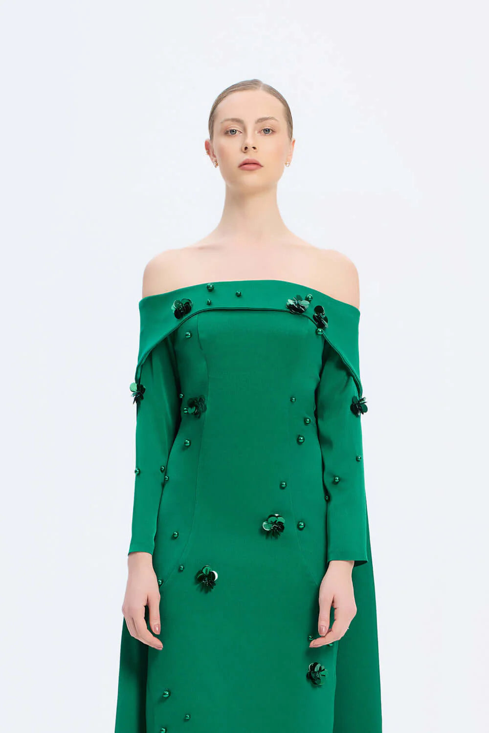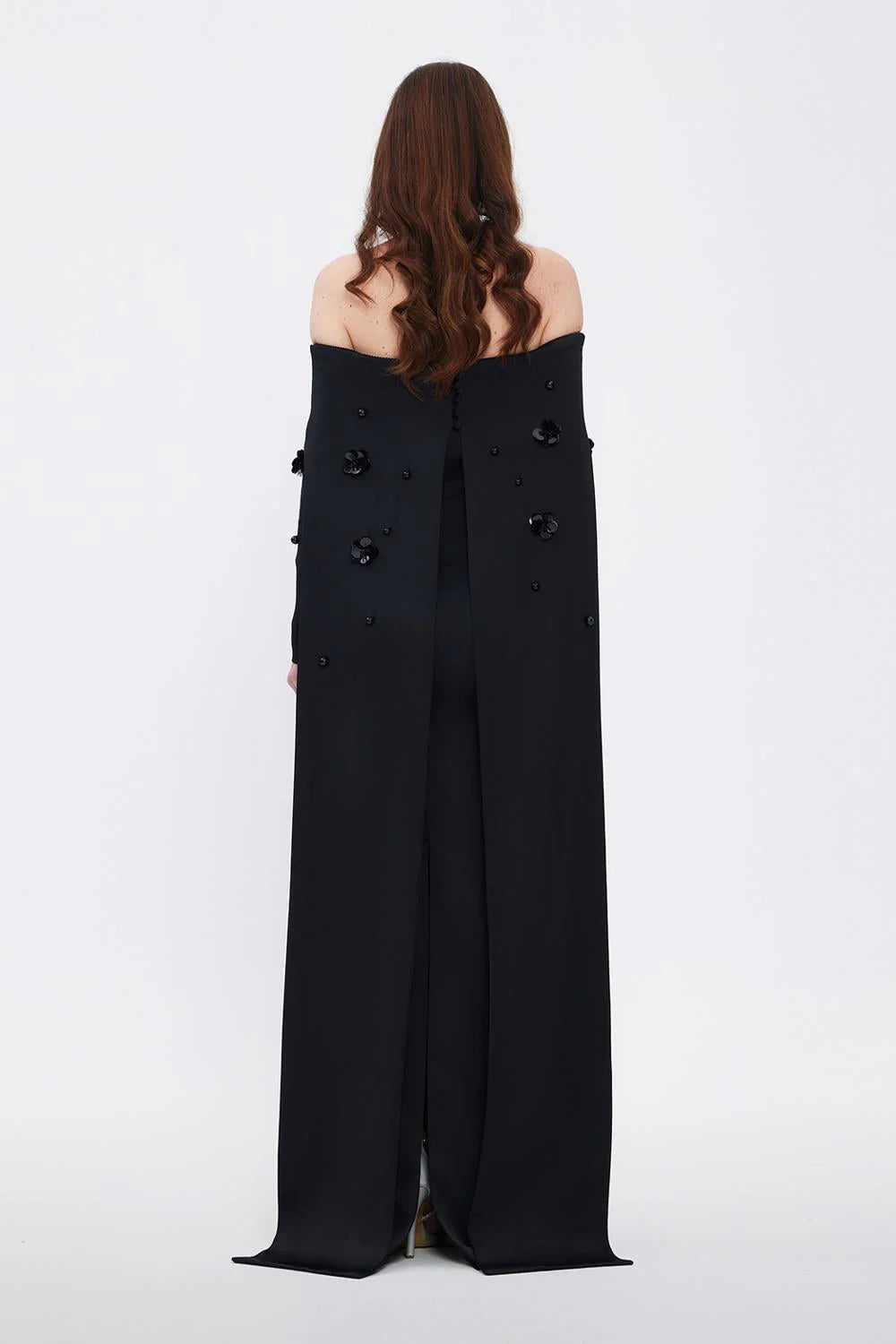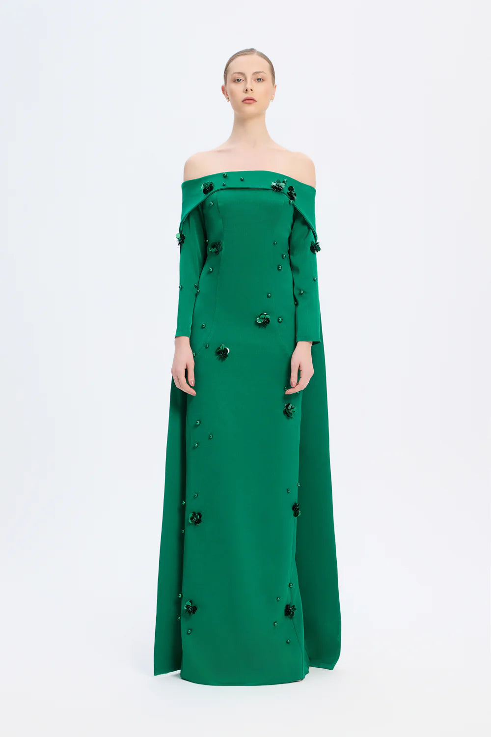 KAYIK YAKA AKSESUAR DETAYLI UZUN ABİYE ELBİSE - 01026C
