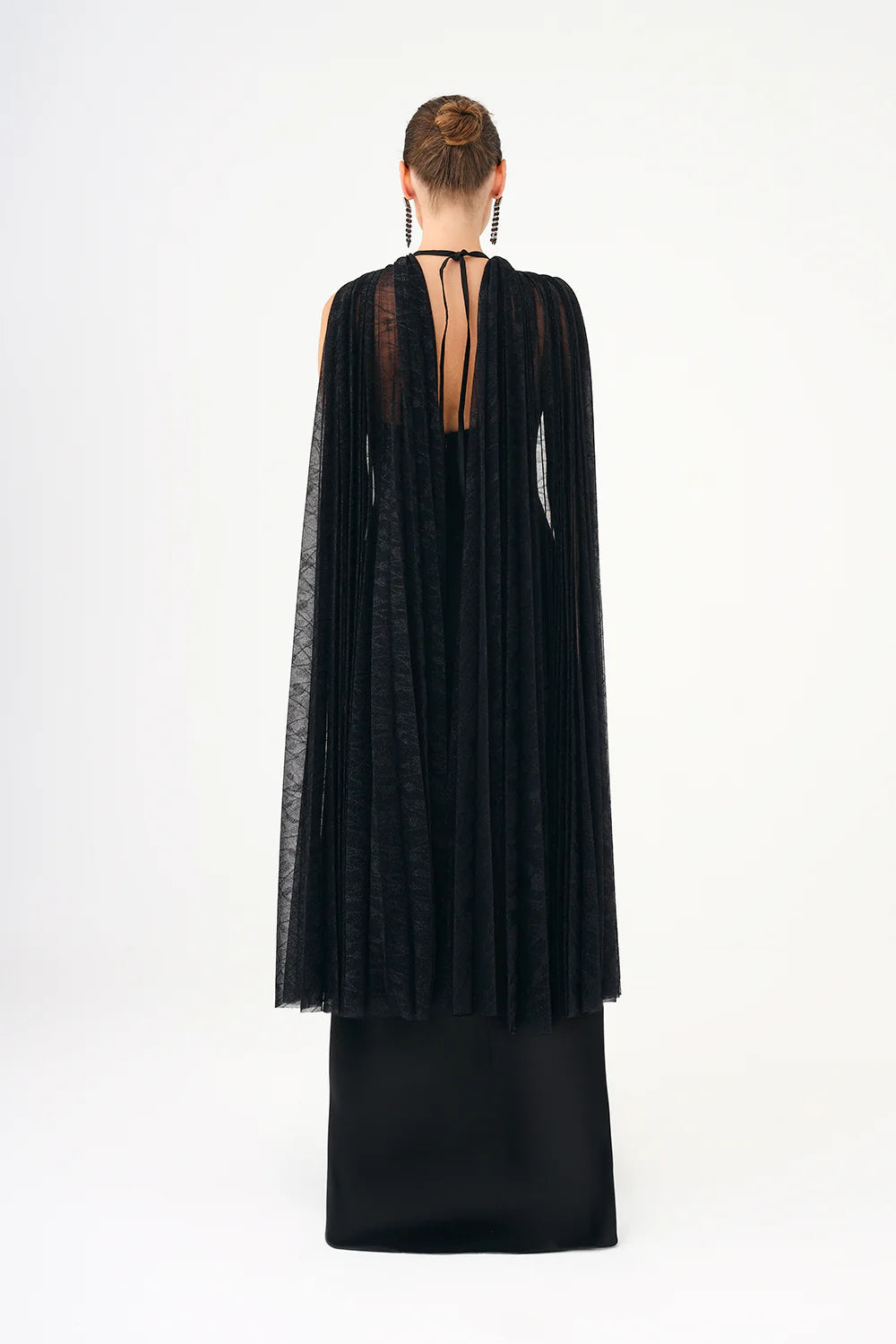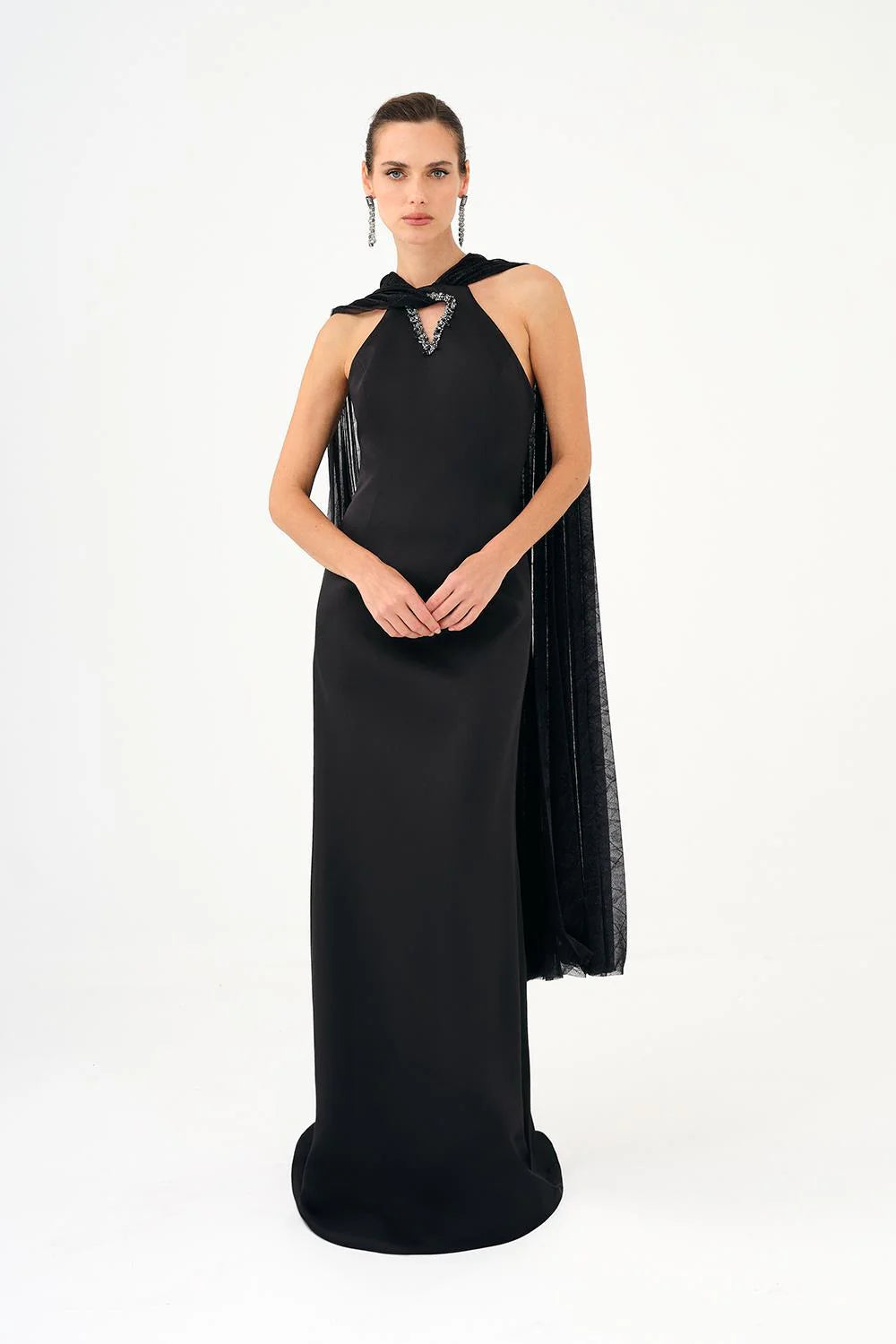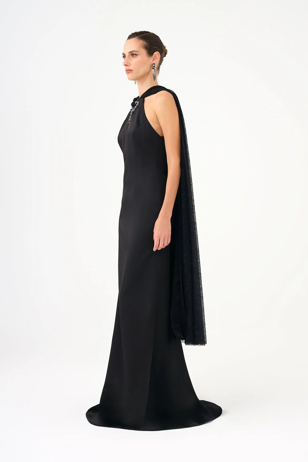 ŞALLI TAŞ İŞLEMELİ SATEN UZUN ABİYE ELBİSE - 9052C