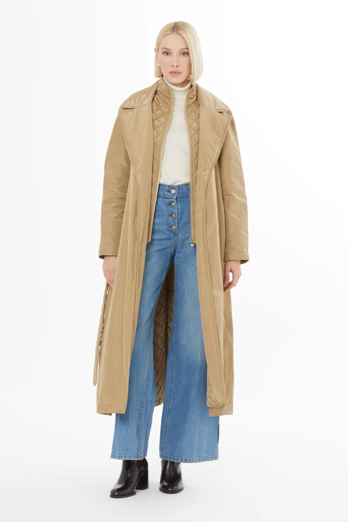 Seyyar Kumaşlı Uzun Kapitone Mont