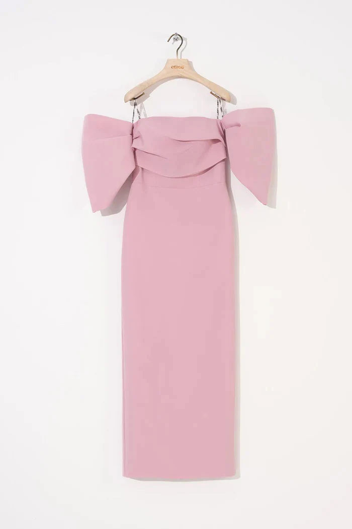 STRAPLEZ DÜŞÜK BALON KOLLU UZUN ELBİSE