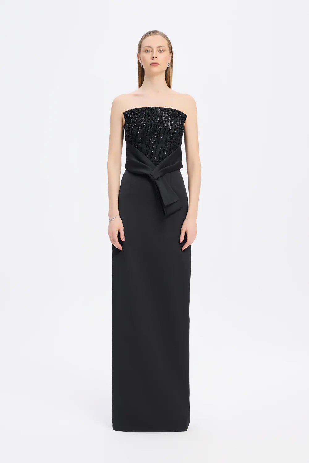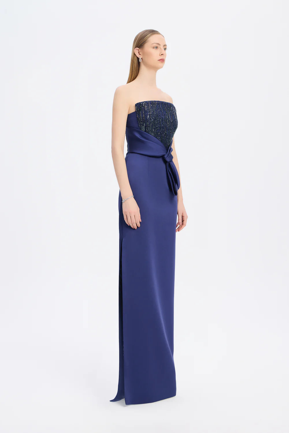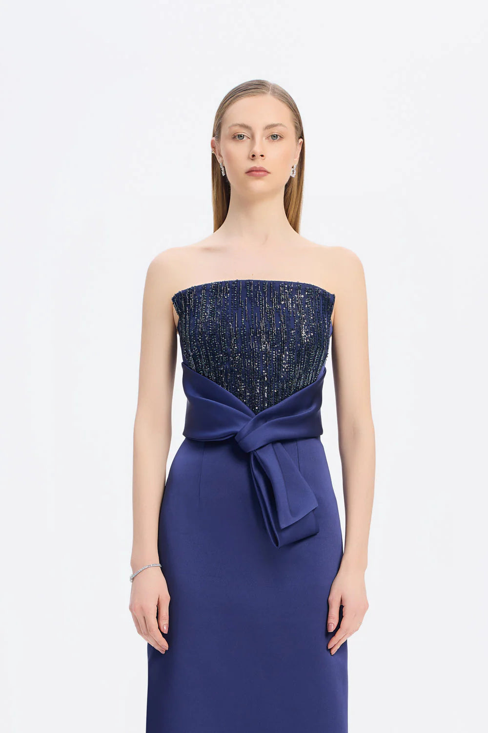 STRAPLEZ YAKA DÜZ KESİM SATEN ABİYE ELBİSE - 9171C