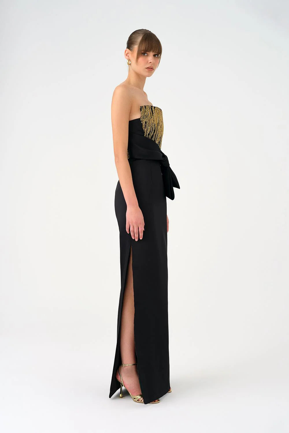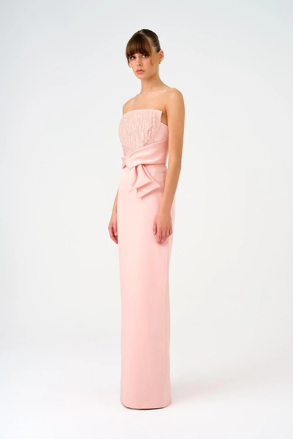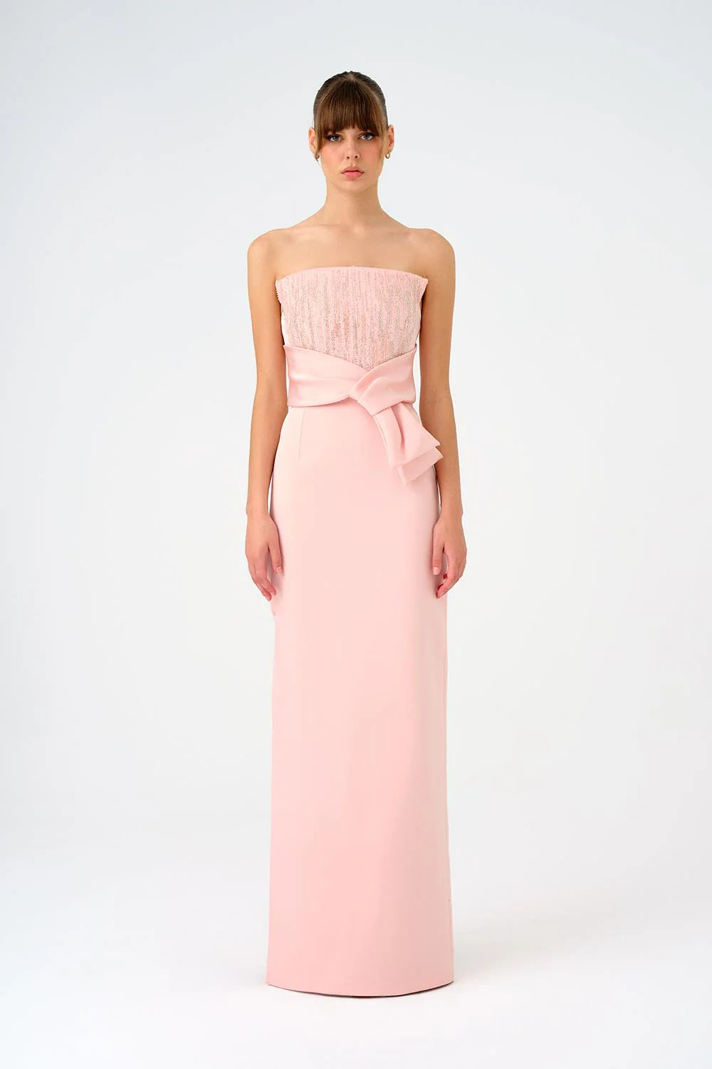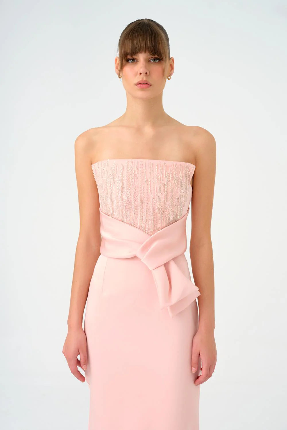 STRAPLEZ YAKA DÜZ KESİM SATEN ABİYE ELBİSE - 9171C