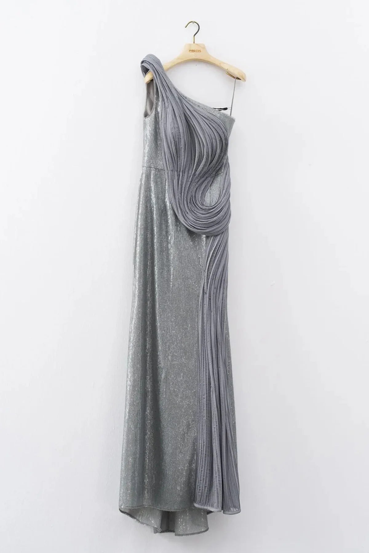 TEK OMUZ PAYETLİ ORGANZE DETAYLI UZUN ABİYE ELBİSE 2031