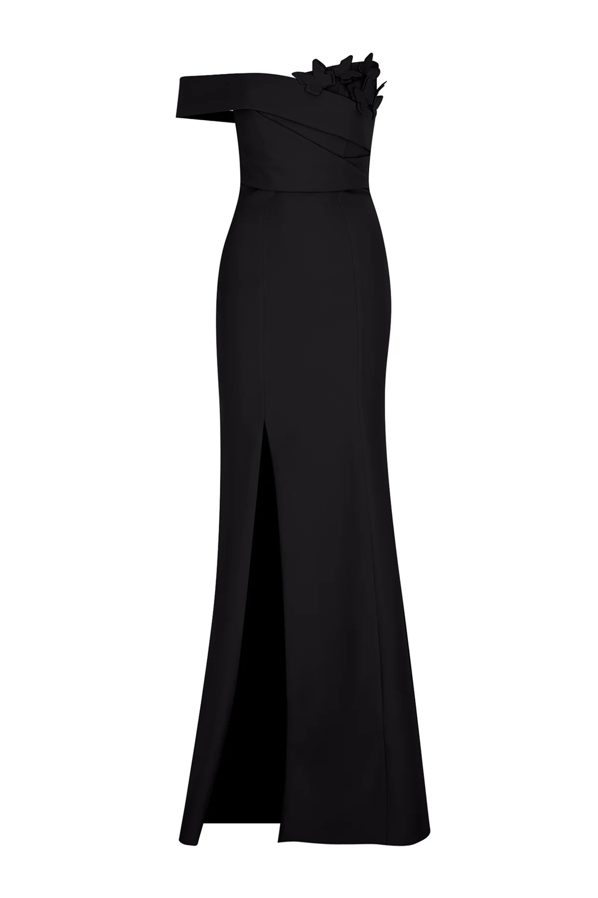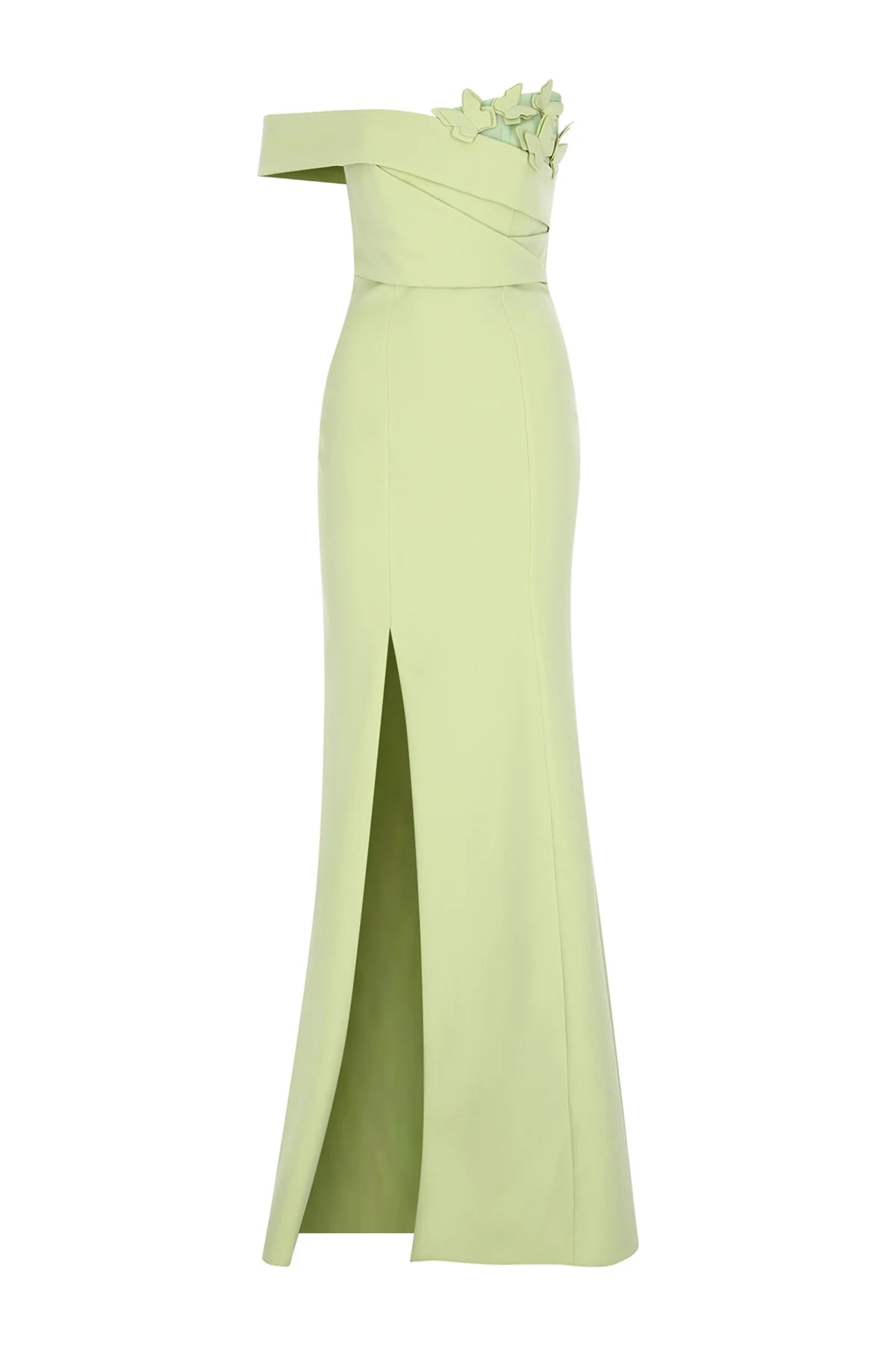 TEK OMUZ VE YIRTMAÇ DETAYLI KELEBEK APLİKELİ ABİYE ELBİSE2257