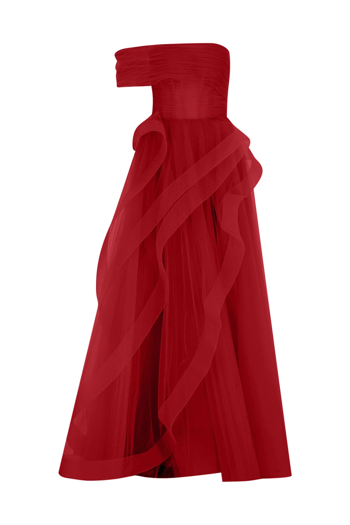 TEK OMUZ VOLAN DETAYLI TÜL UZUN ABİYE ELBİSE