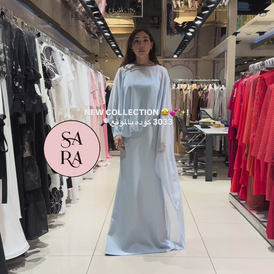 فستان سماوي كريب قطعتين 3033