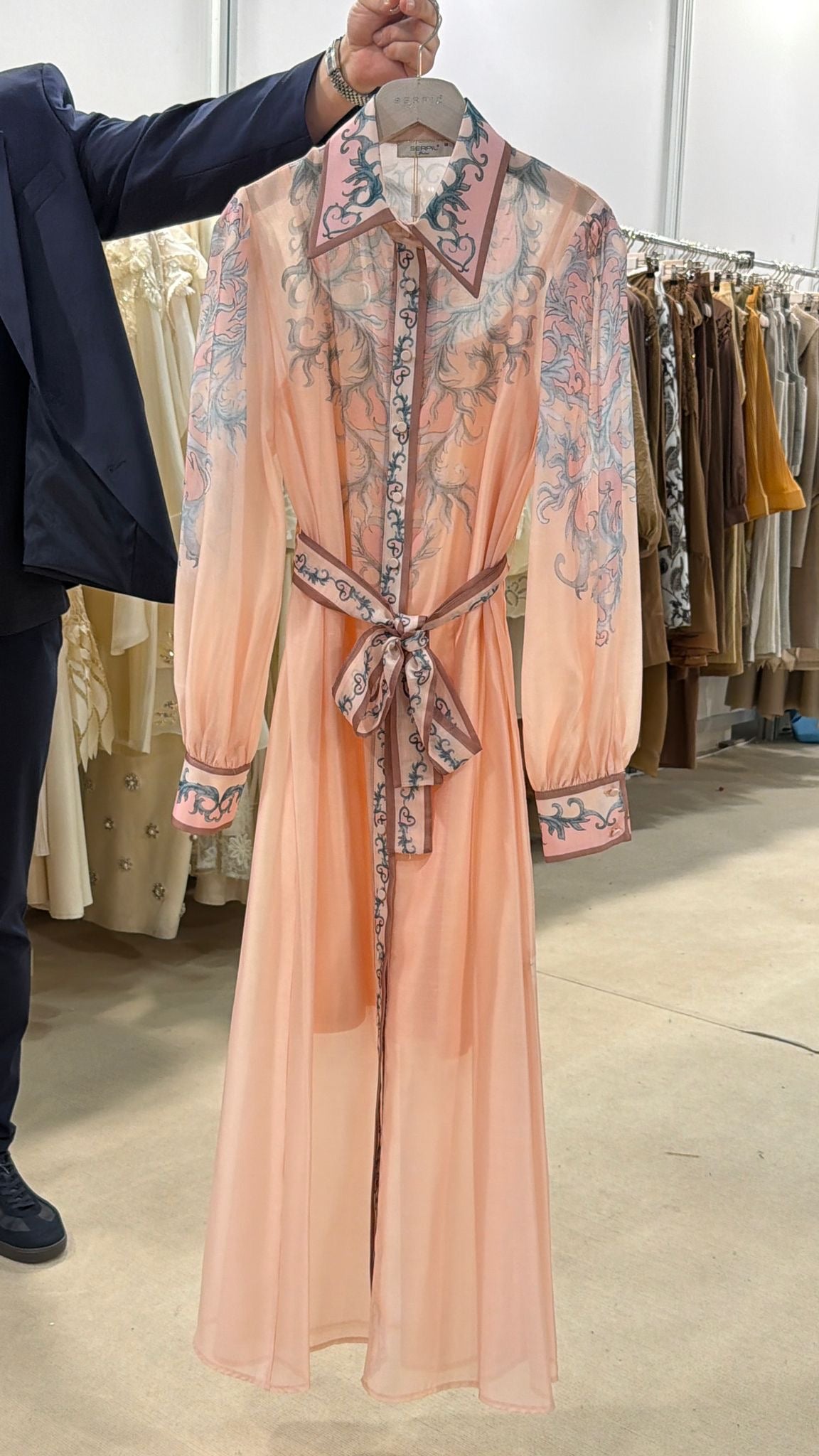فستان وردي خفيف مع حزام