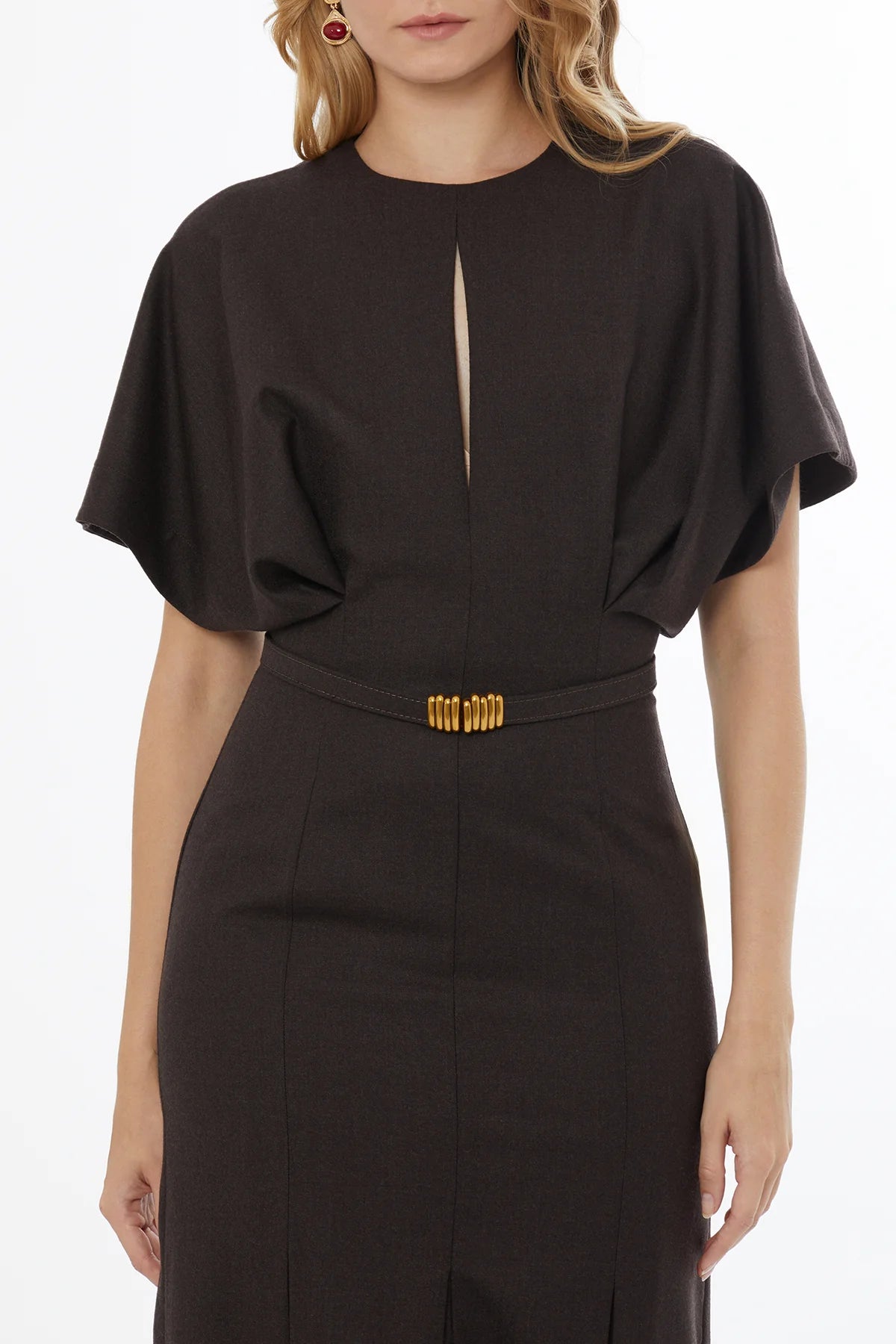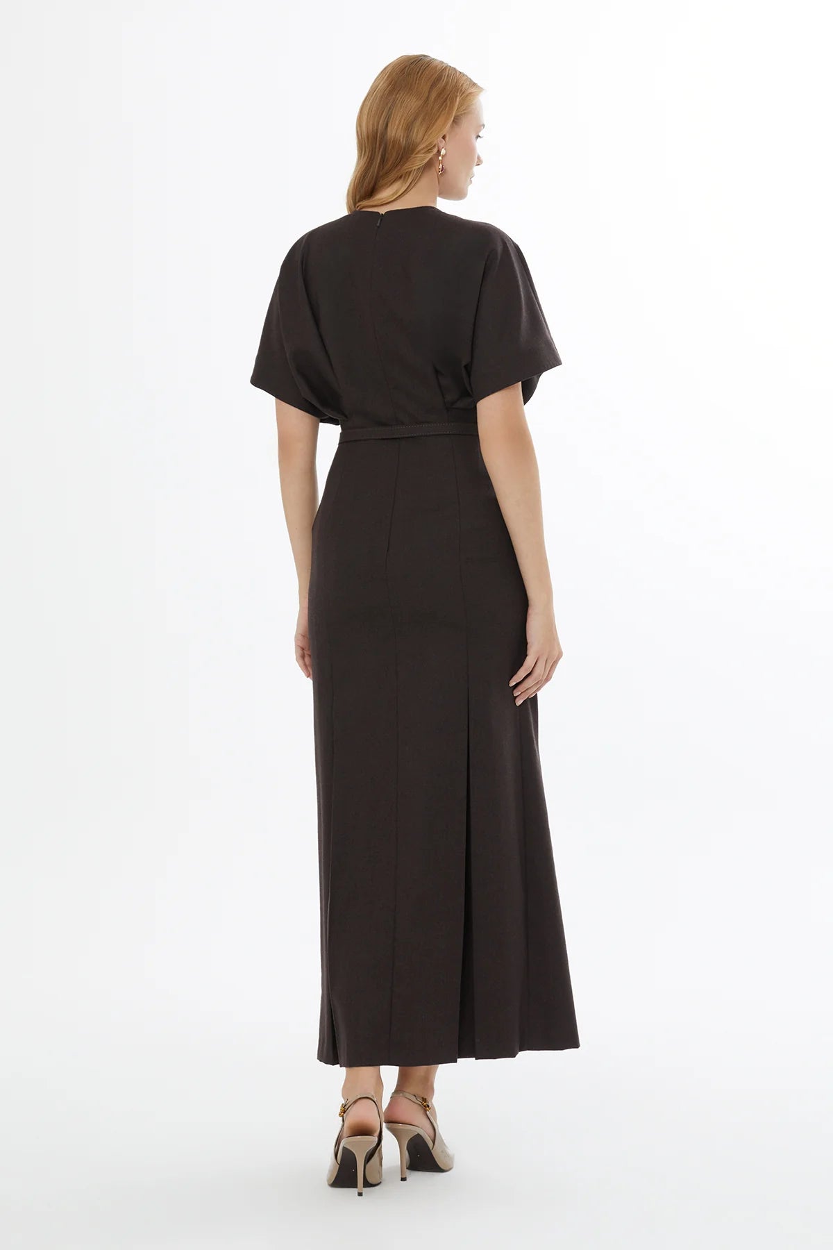 Bisiklet Yakalı Yarasa Kollu Gizli Fermuarlı Maxi Elbise