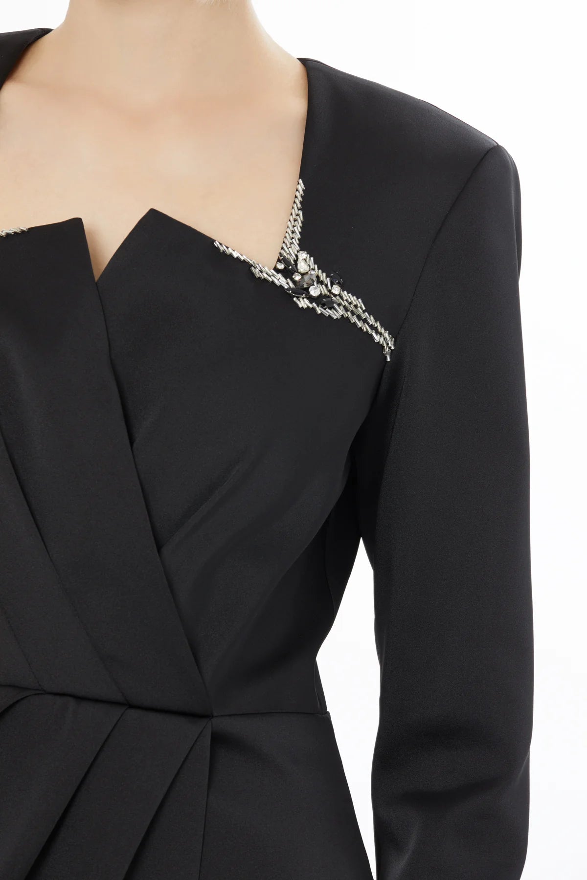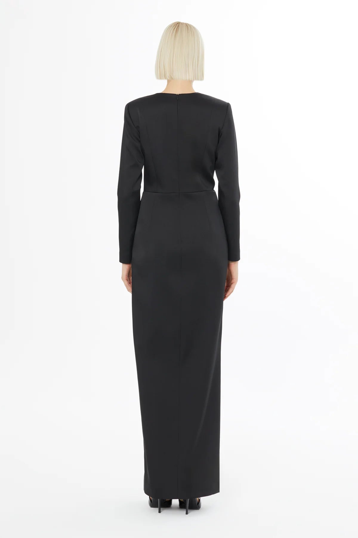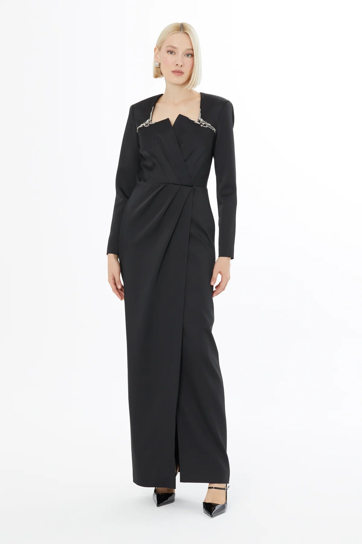 Boncuk İşlemeli Gizli Fermuarlı Uzun Elbise