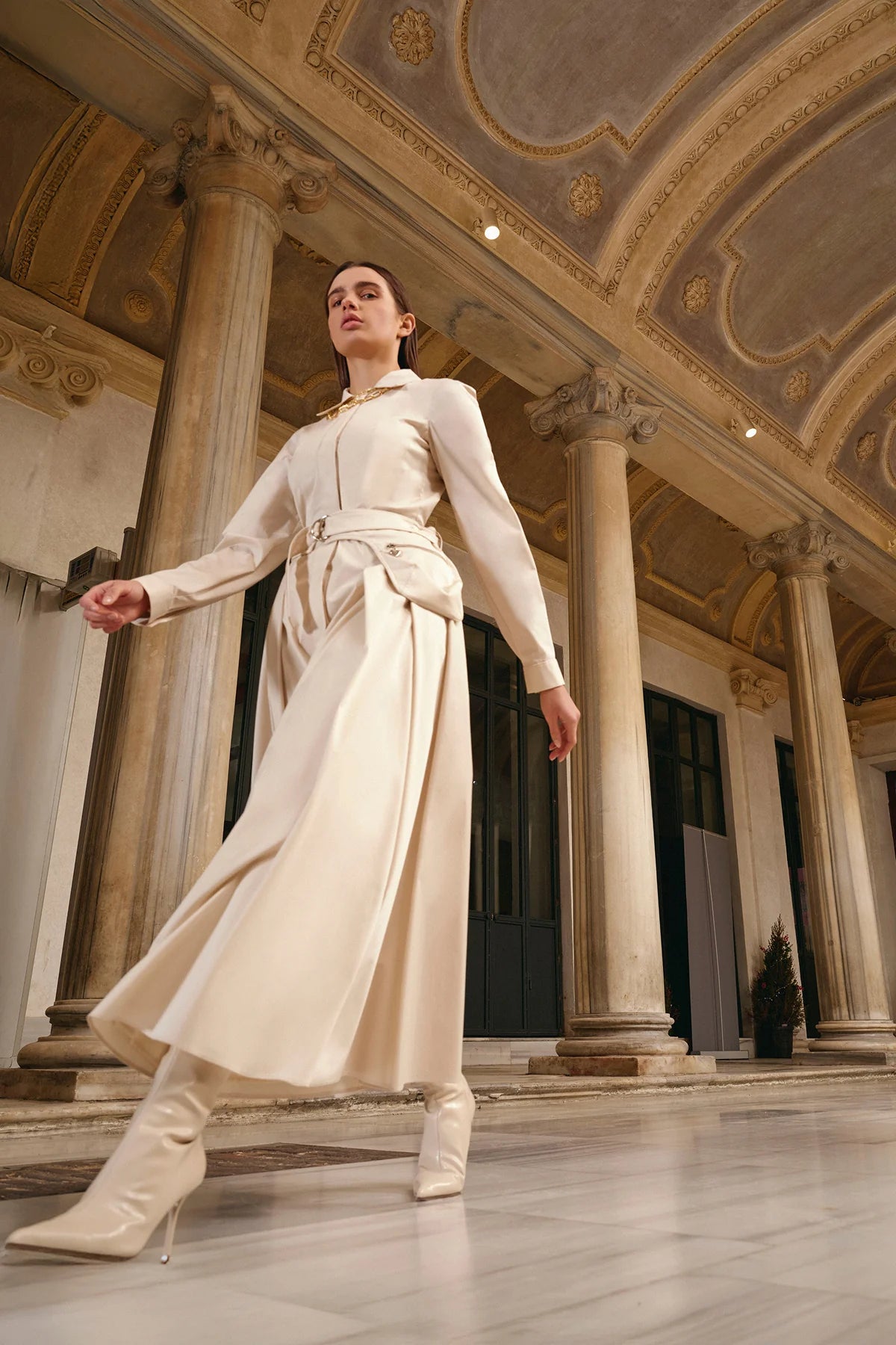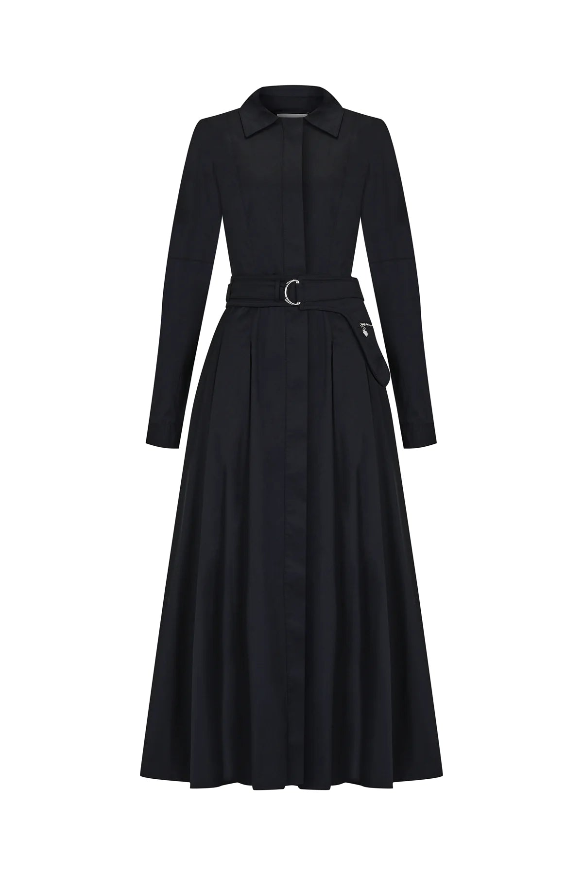 GÖMLEK YAKA BEL KUŞAKLI MİDİ ELBİSE9117