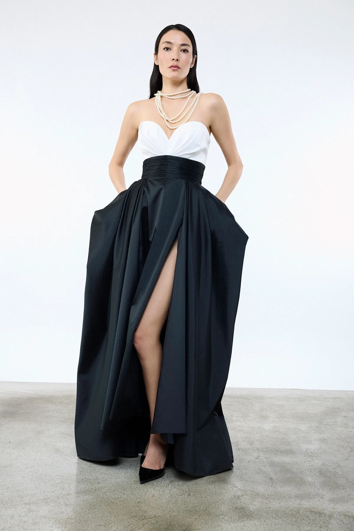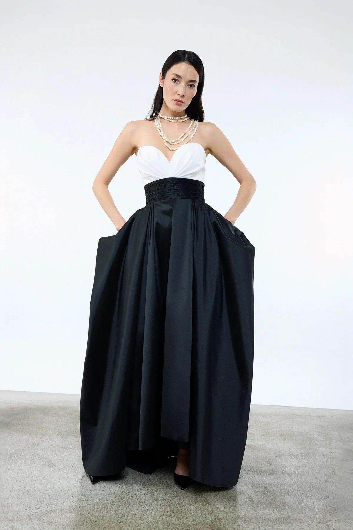 KALP YAKA BELİ KUŞAKLI CEPLİ ABİYE ELBİSE