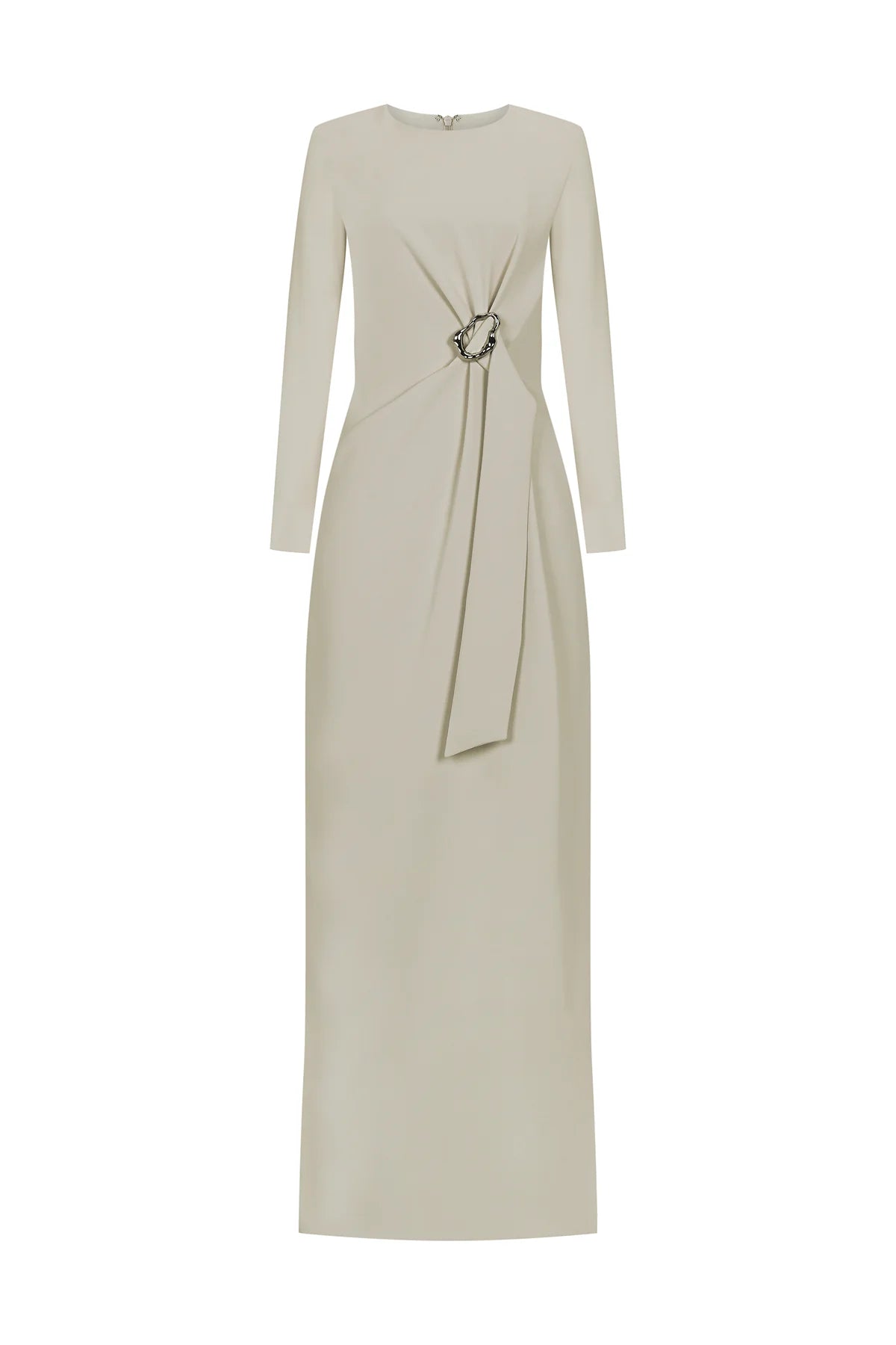 KEMER DETAYLI UZUN KOLLU ABİYE ELBİSE