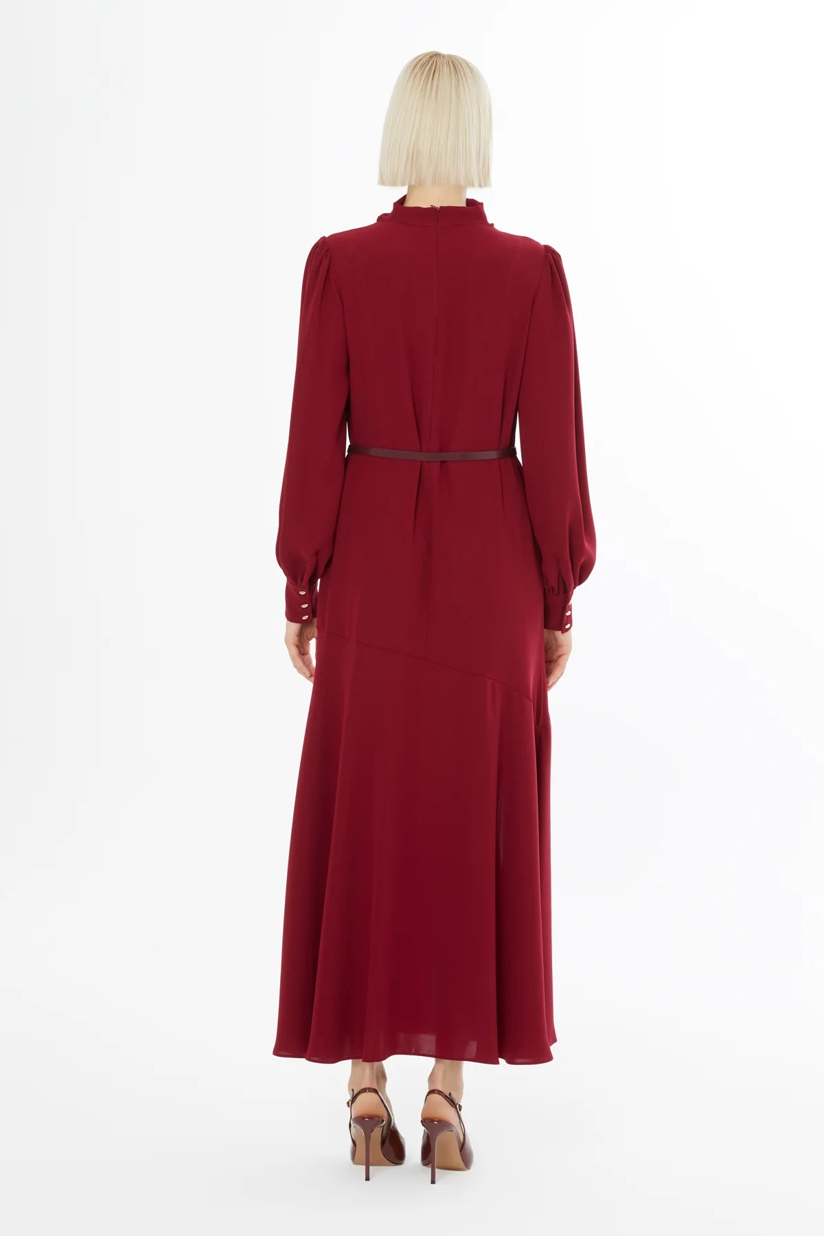 Kemerli Kolları Düğmeli Maxi Elbise