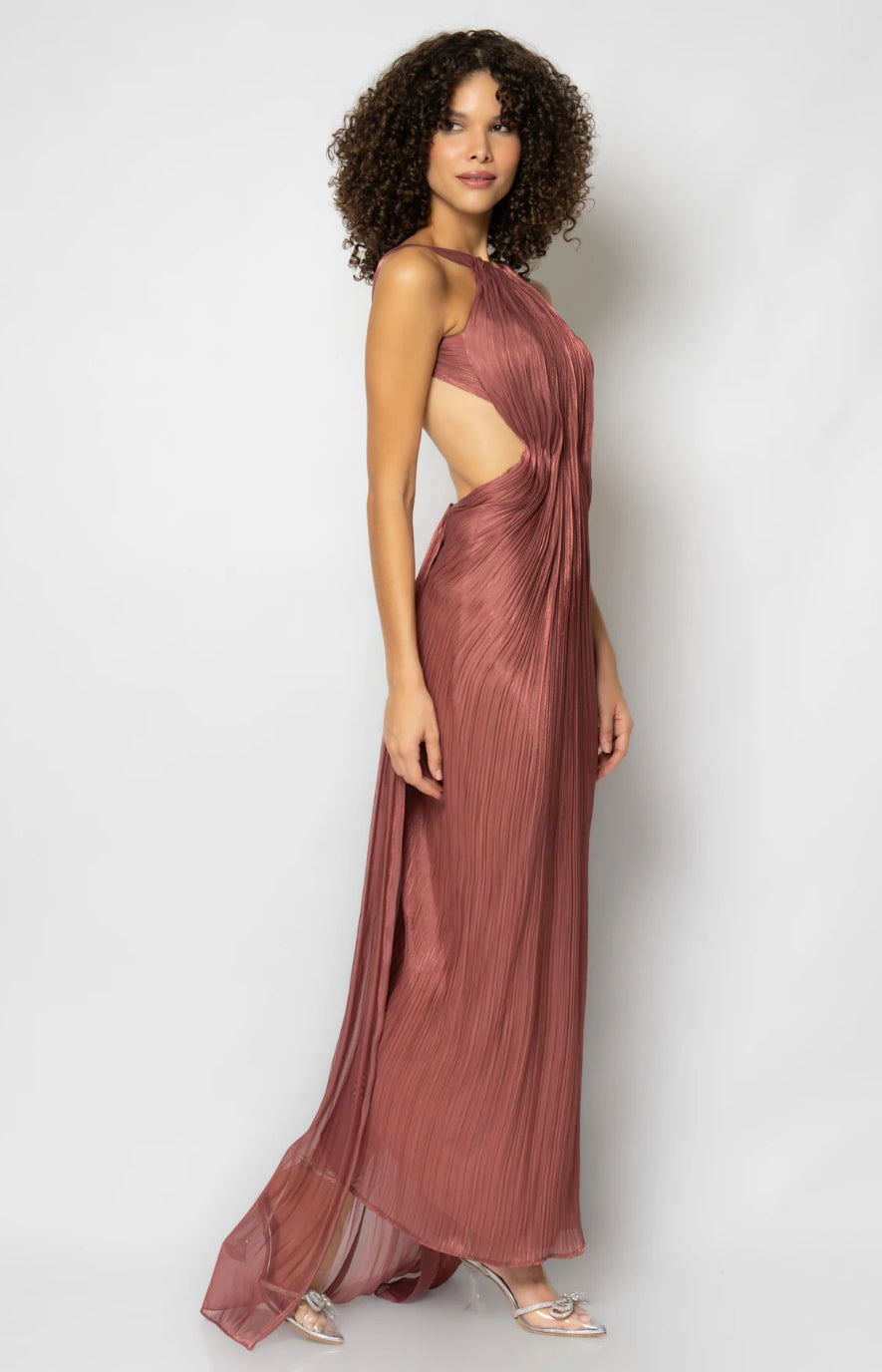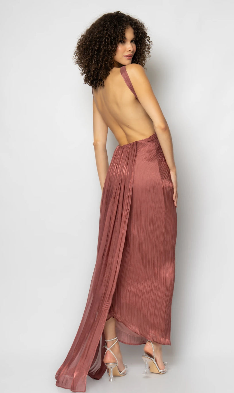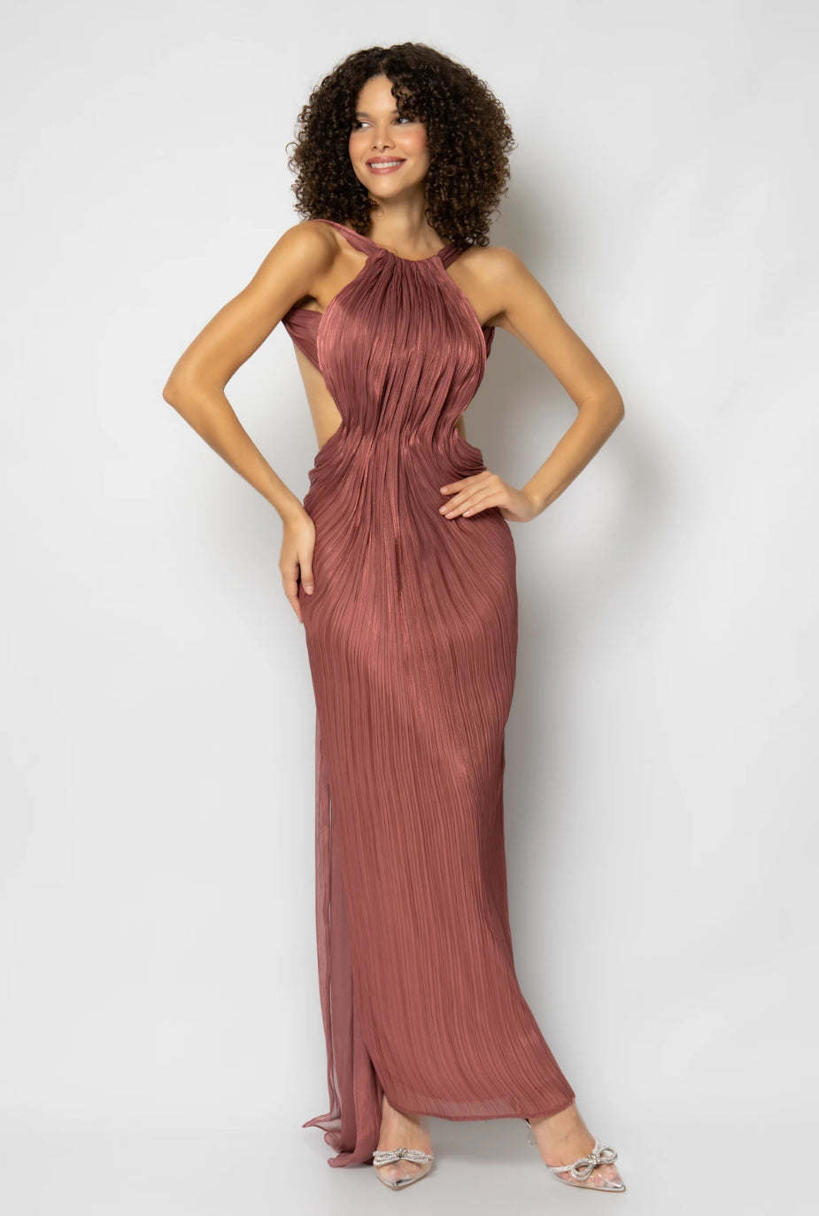 Komple boydan piliseli sırtı açık ince organze abiye elbise 1122