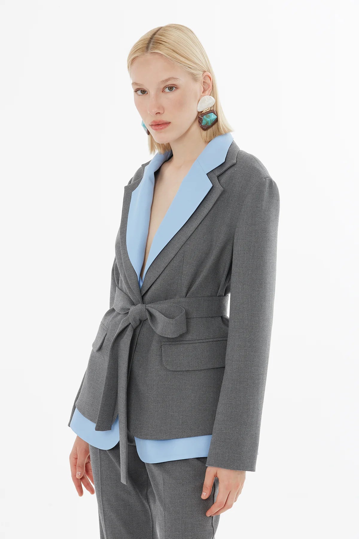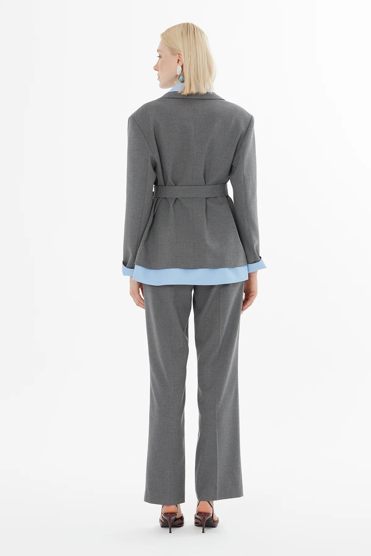 Kuşak Bağlamalı Ceket Ve Pantolonlu Takım