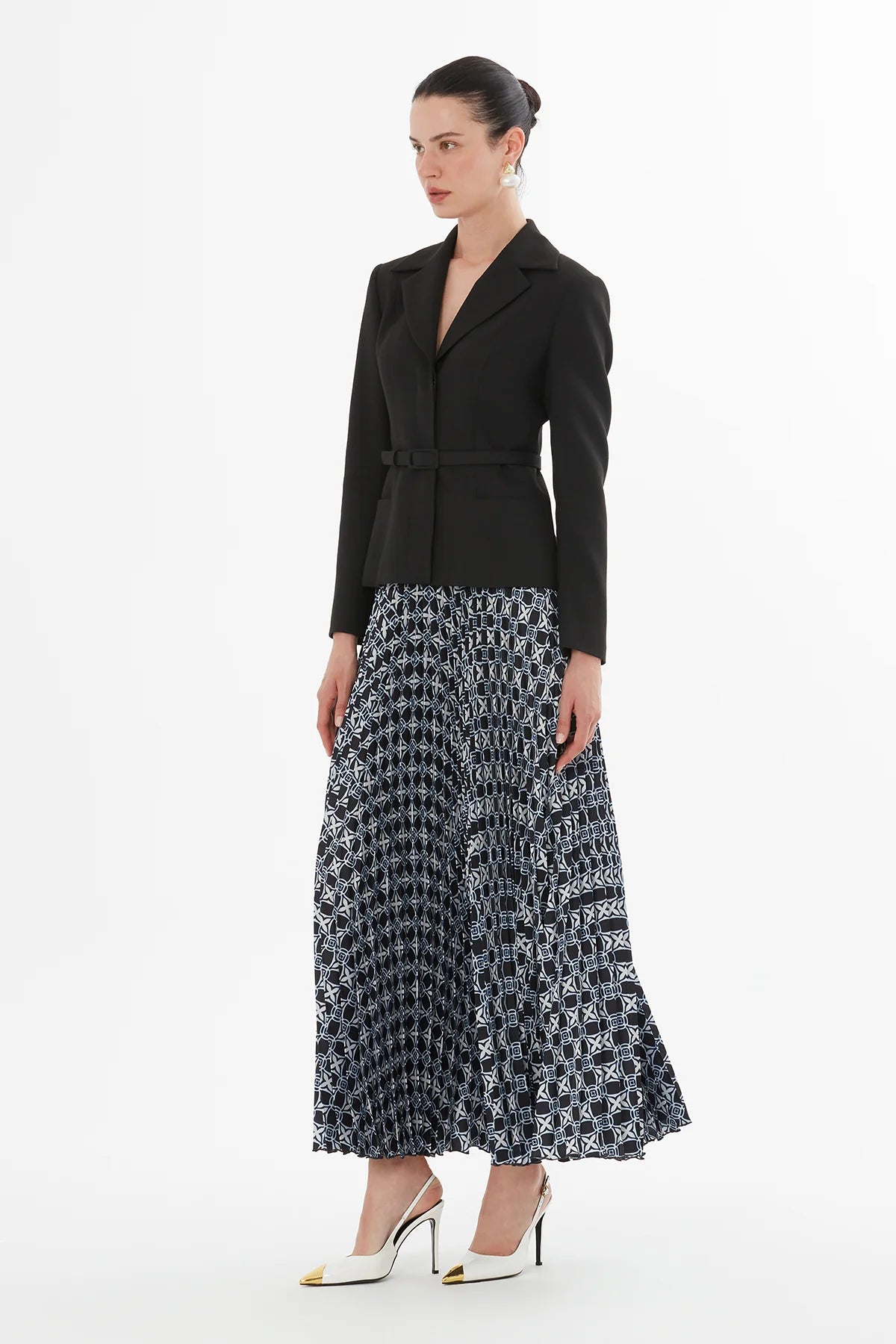 Önü Gizli Patlı Cepli Ceket Eteği Pliseli Kemerli Takım