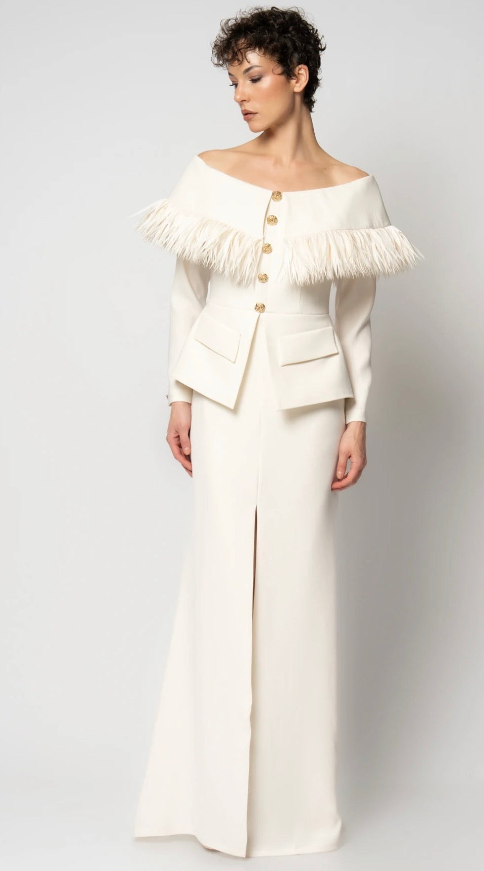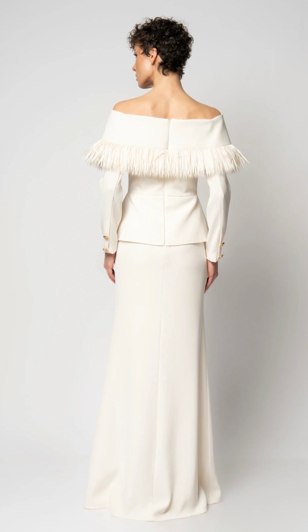 Robası organze saçaklı düğme detaylı krep abiye elbise 2287