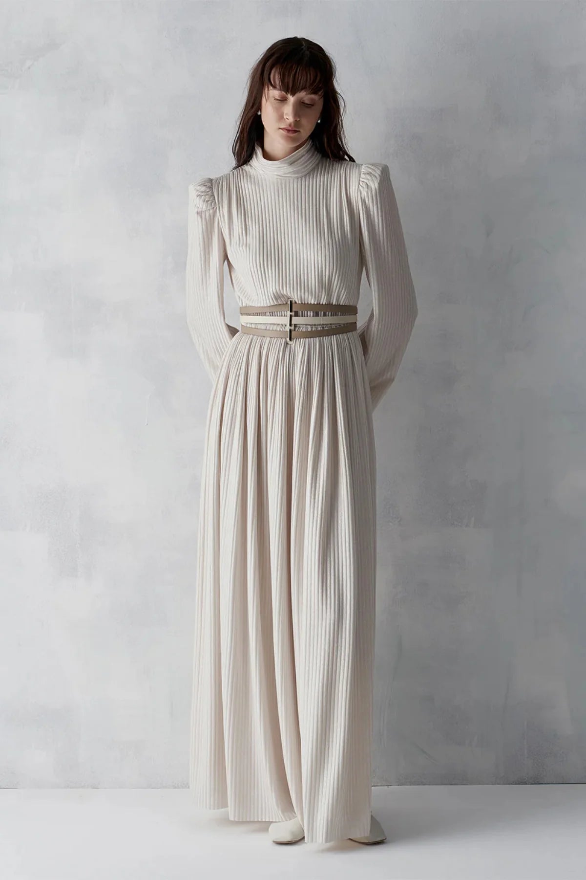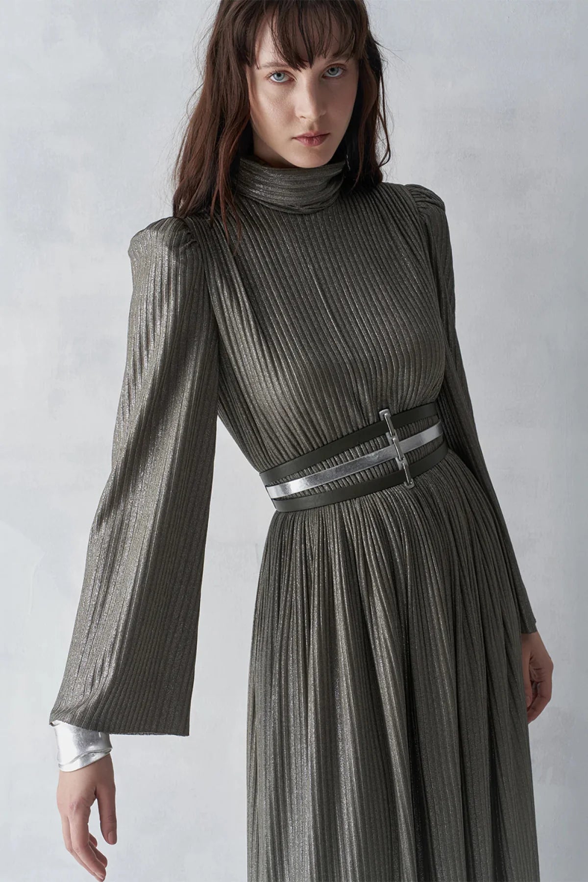 SİMLİ FİTİLLİ KEMERLİ UZUN ABİYE ELBİSE