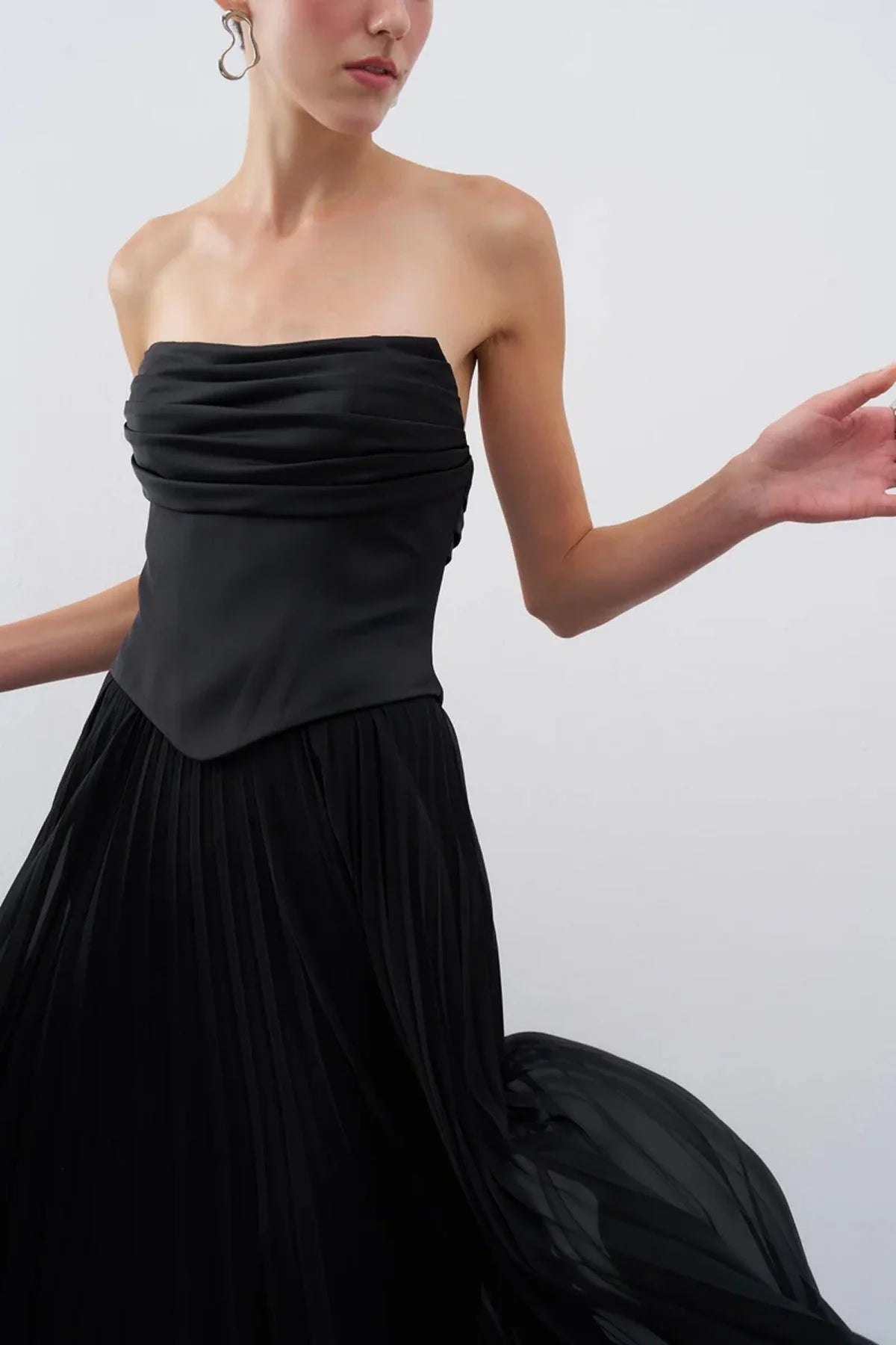 STRAPLEZ DRAPELİ ETEĞİ PİLİSELİ UZUN ABİYE ELBİSE 2101