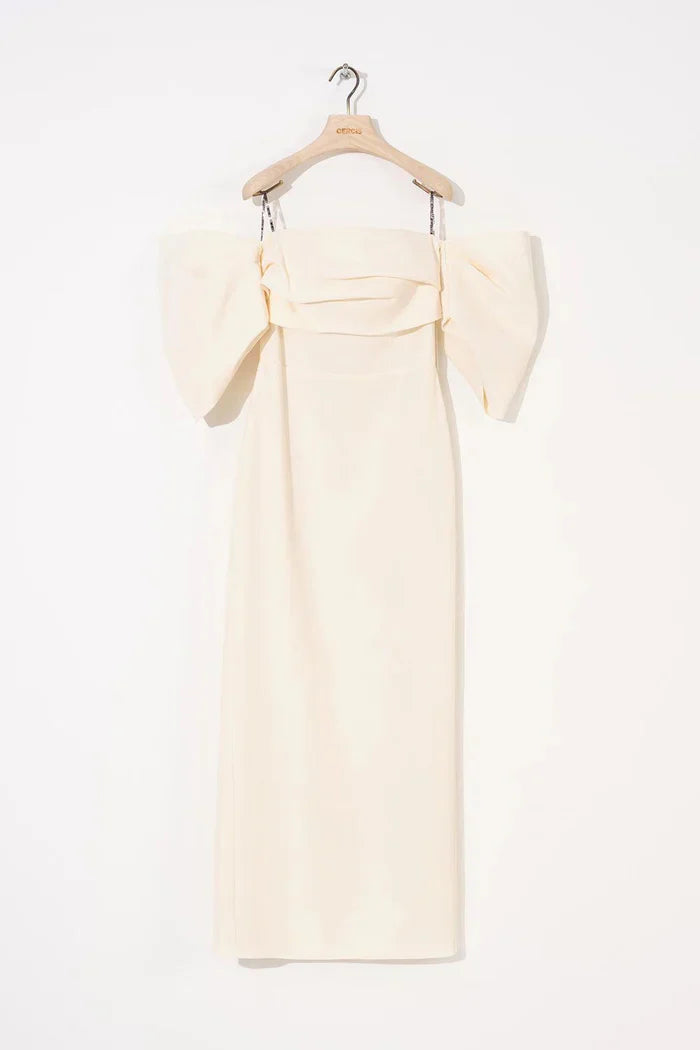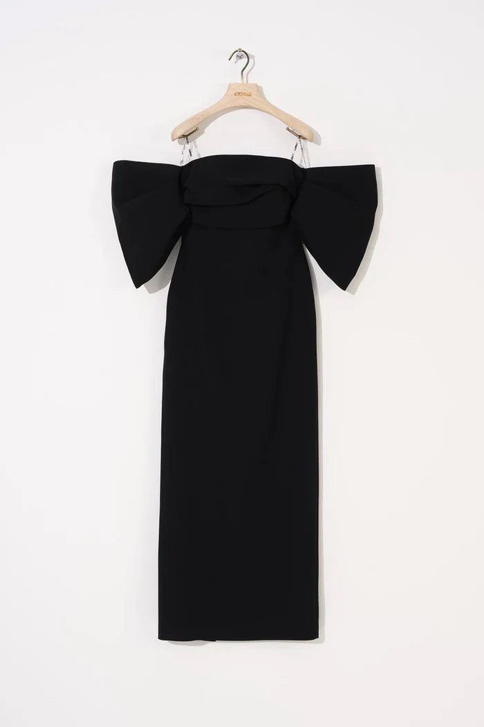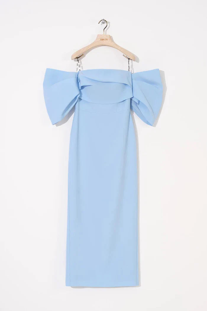 STRAPLEZ DÜŞÜK BALON KOLLU UZUN ELBİSE 1044
