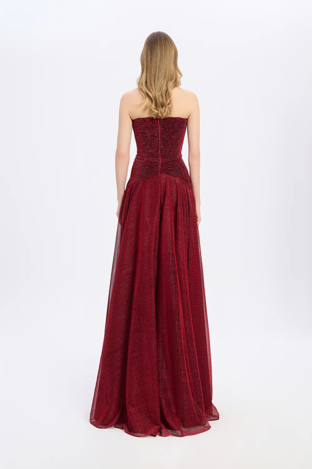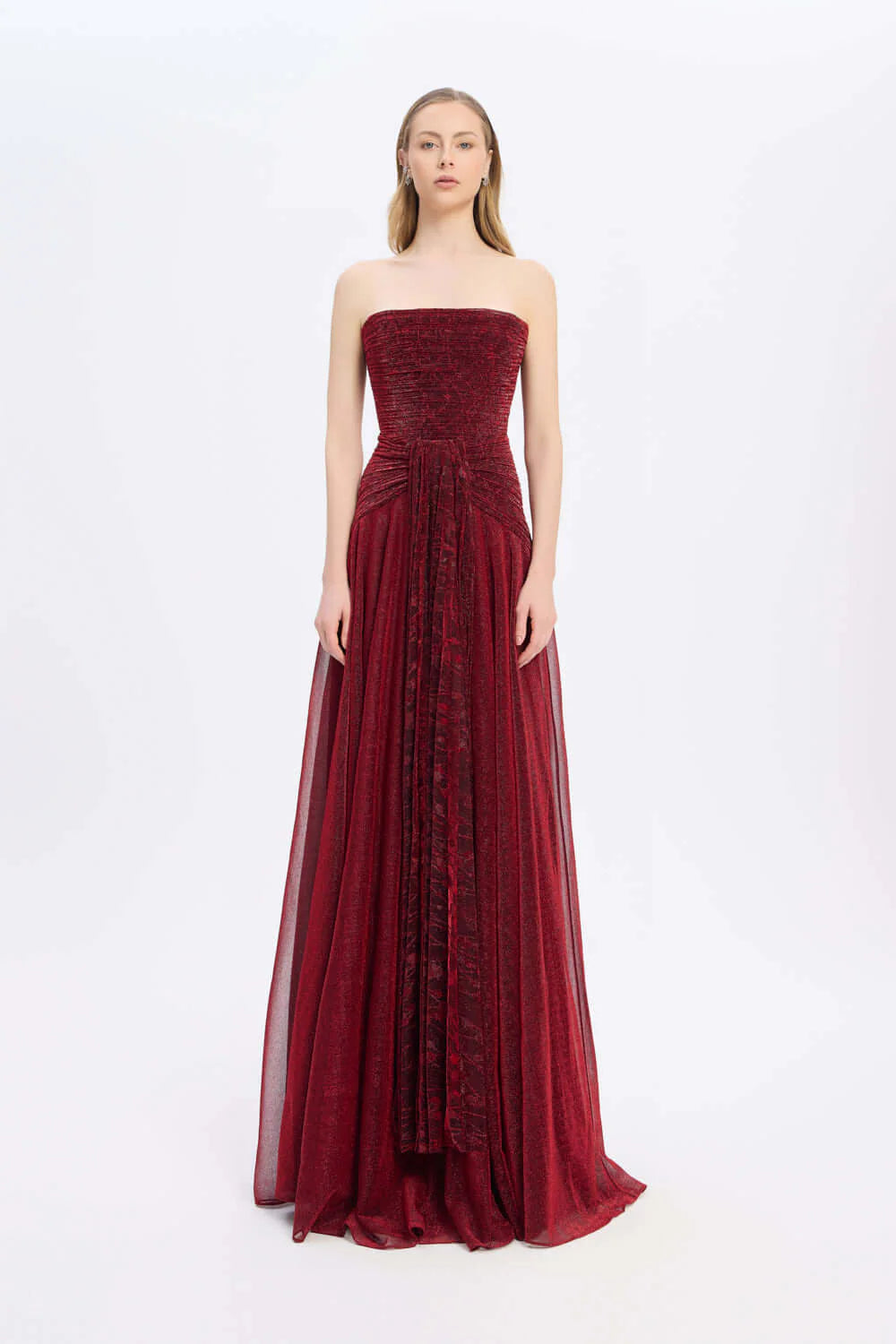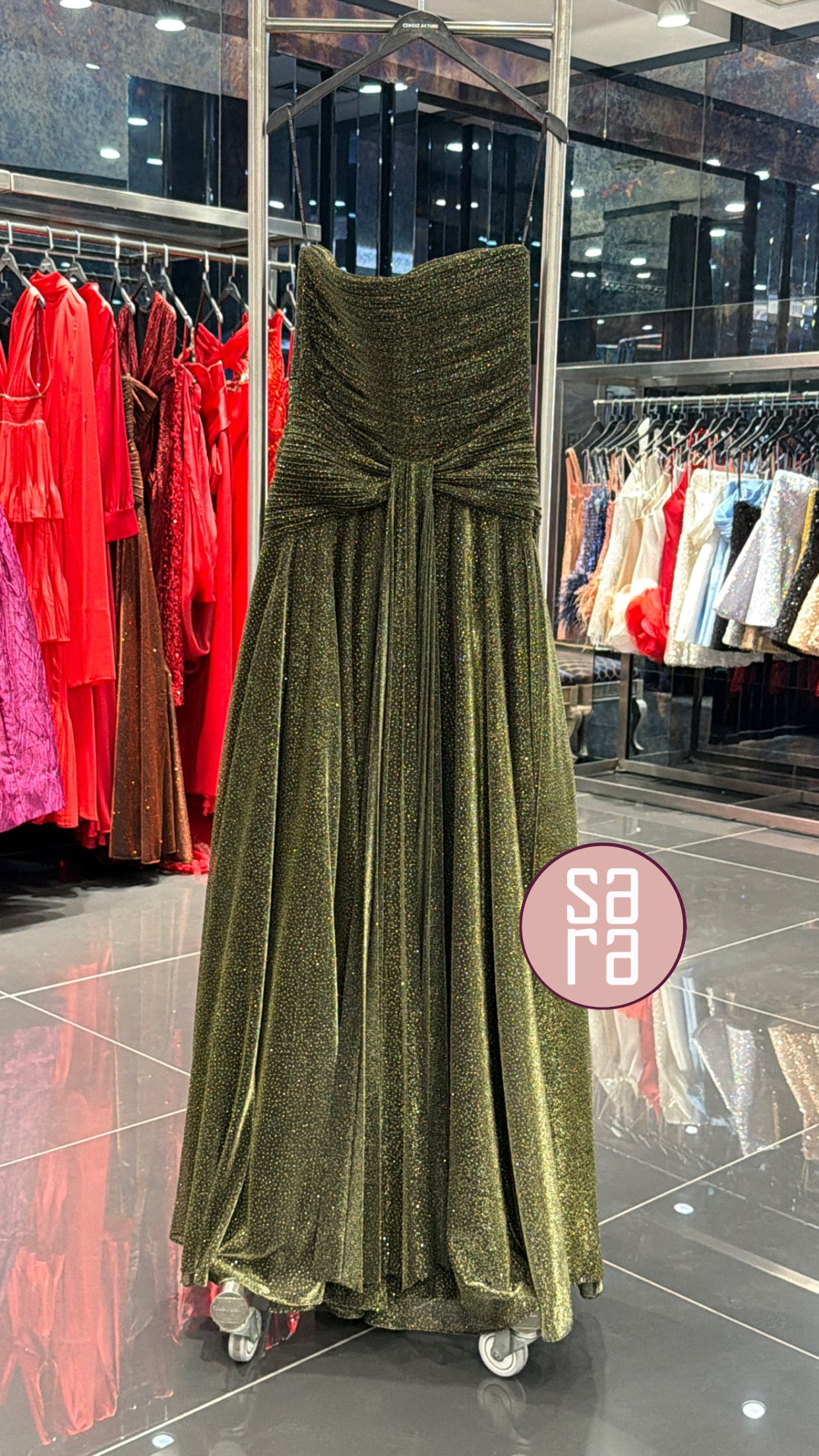 STRAPLEZ YAKA SİMLİ UZUN ABİYE ELBİSE - 9167C