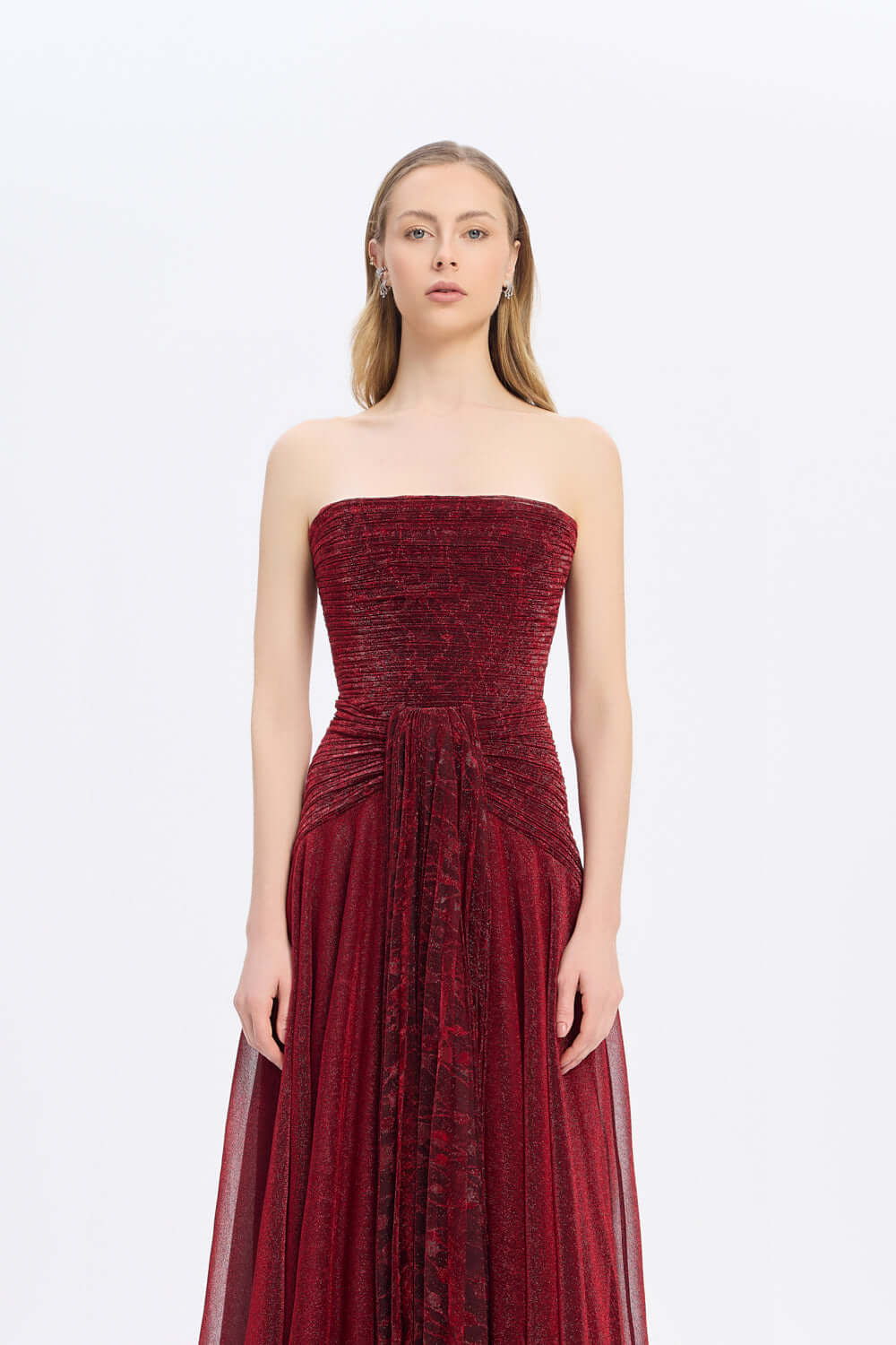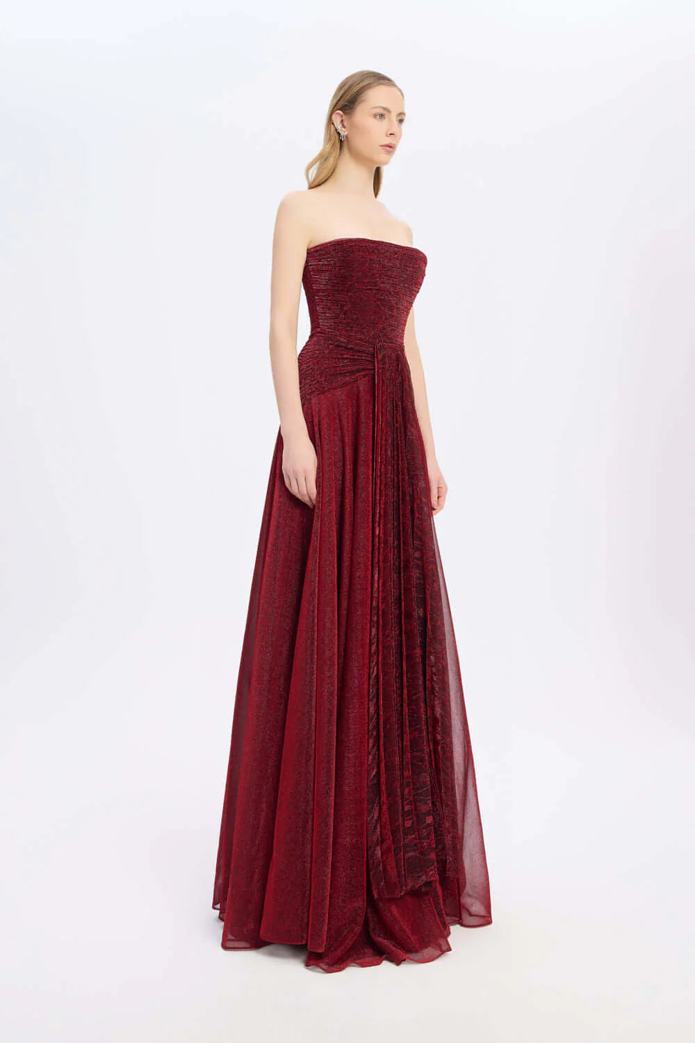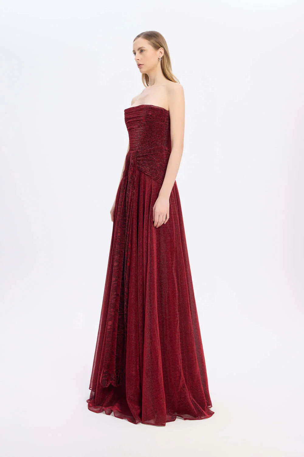 STRAPLEZ YAKA SİMLİ UZUN ABİYE ELBİSE - 9167C