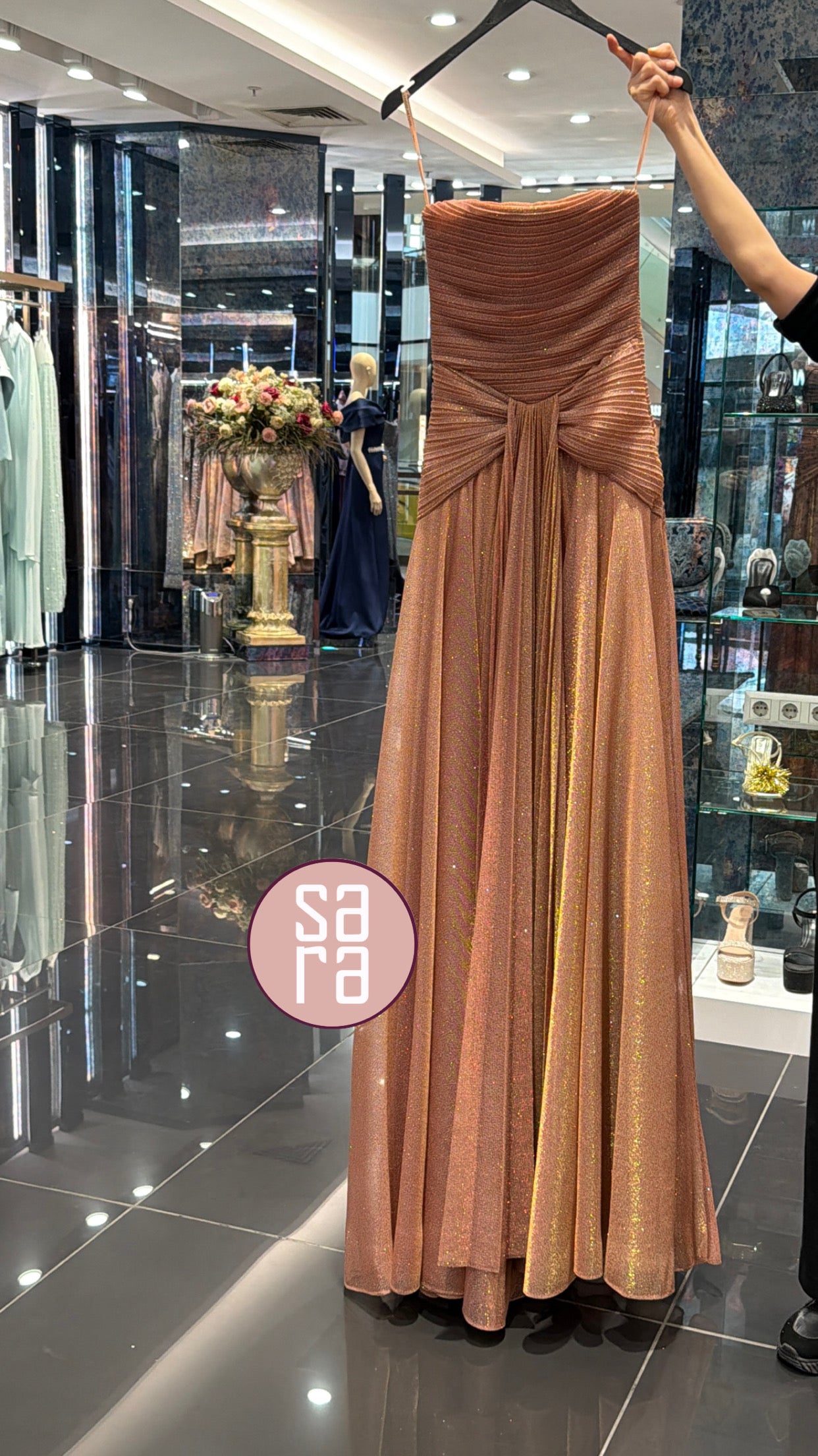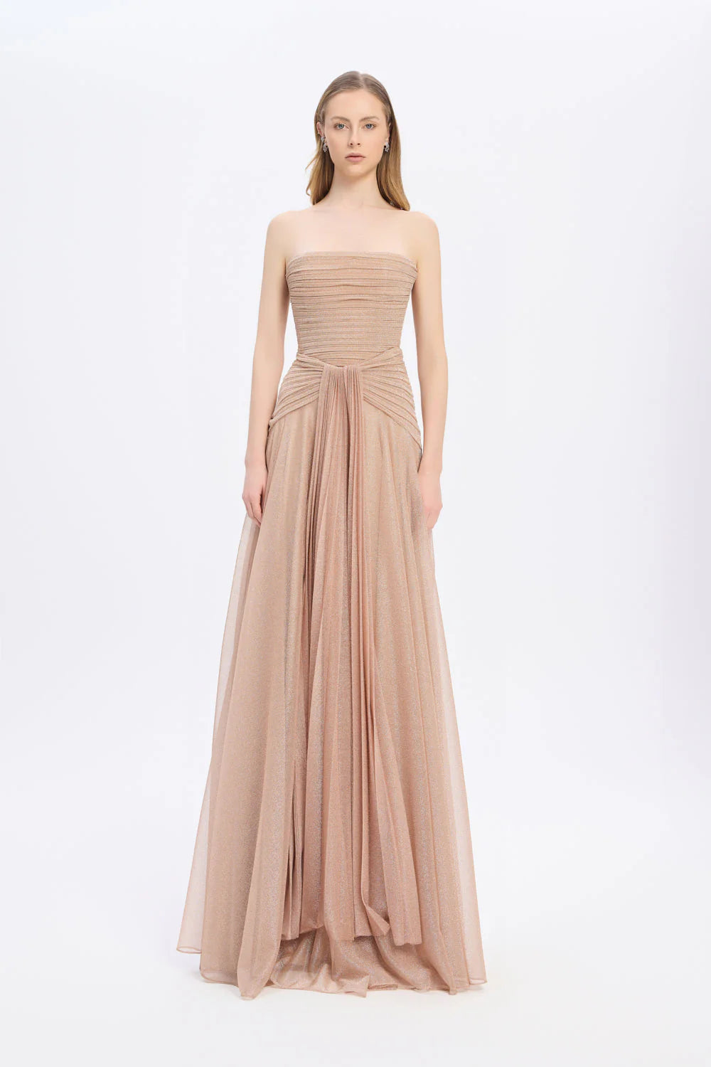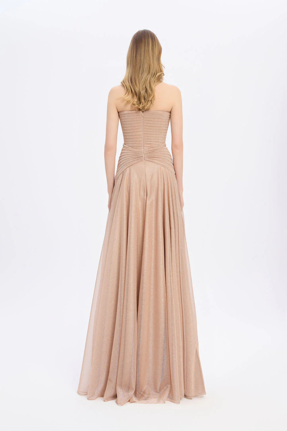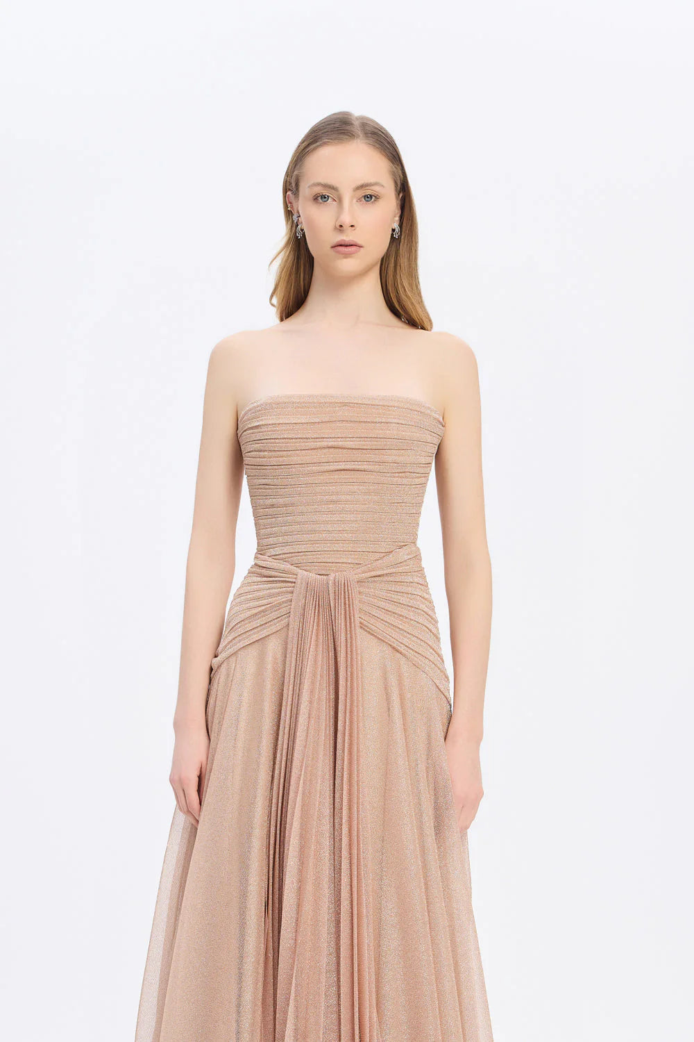 STRAPLEZ YAKA SİMLİ UZUN ABİYE ELBİSE 9167C