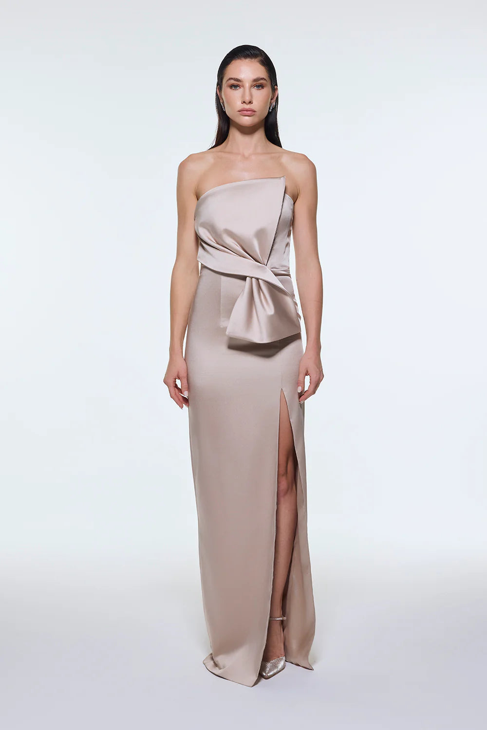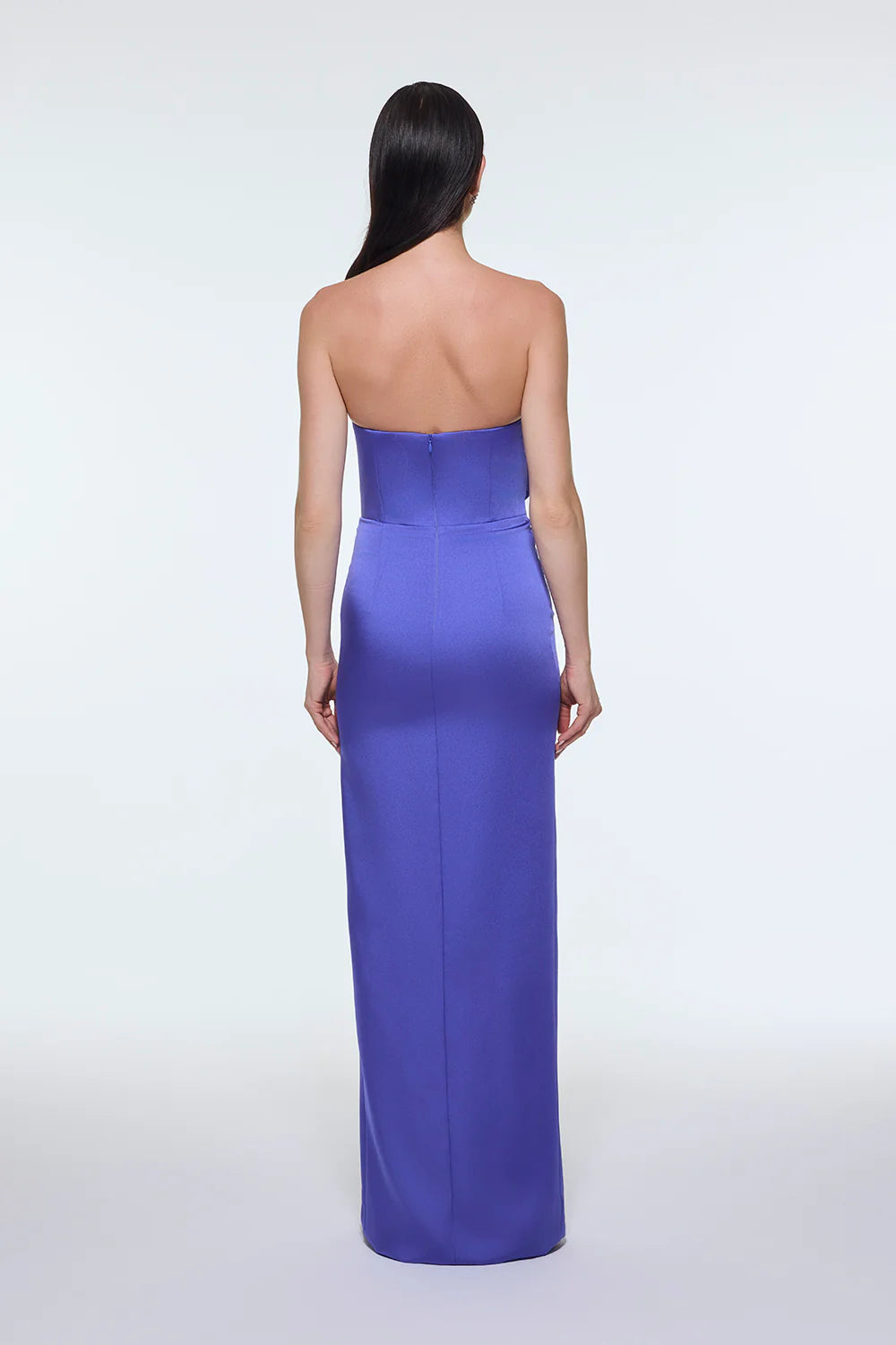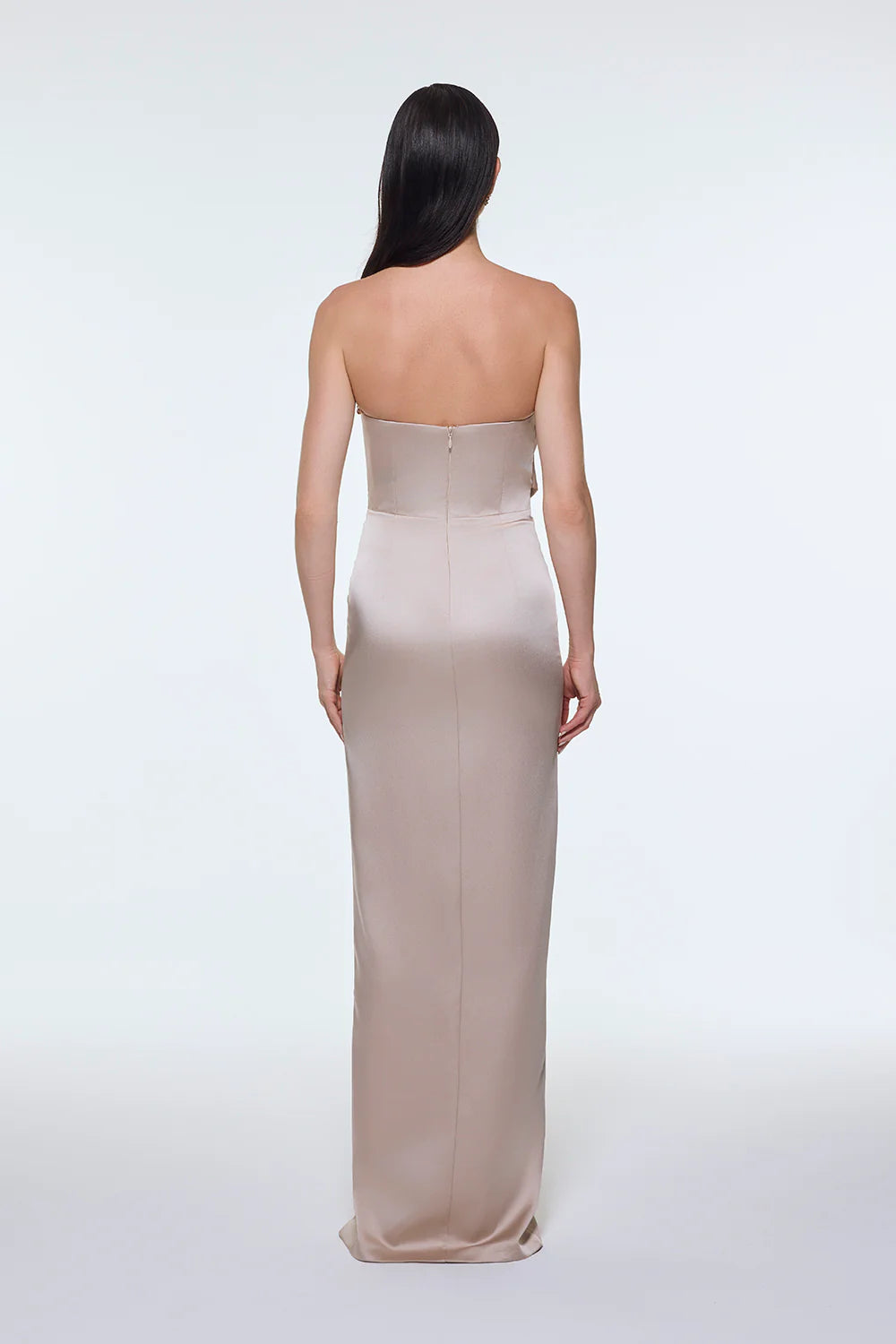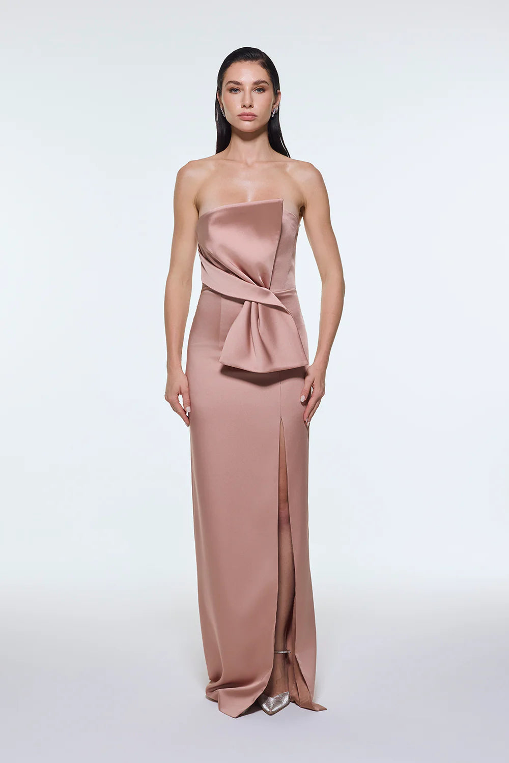 STRAPLEZ YAKA YIRTMAÇLI SATEN UZUN ABİYE ELBİSE - 9281C