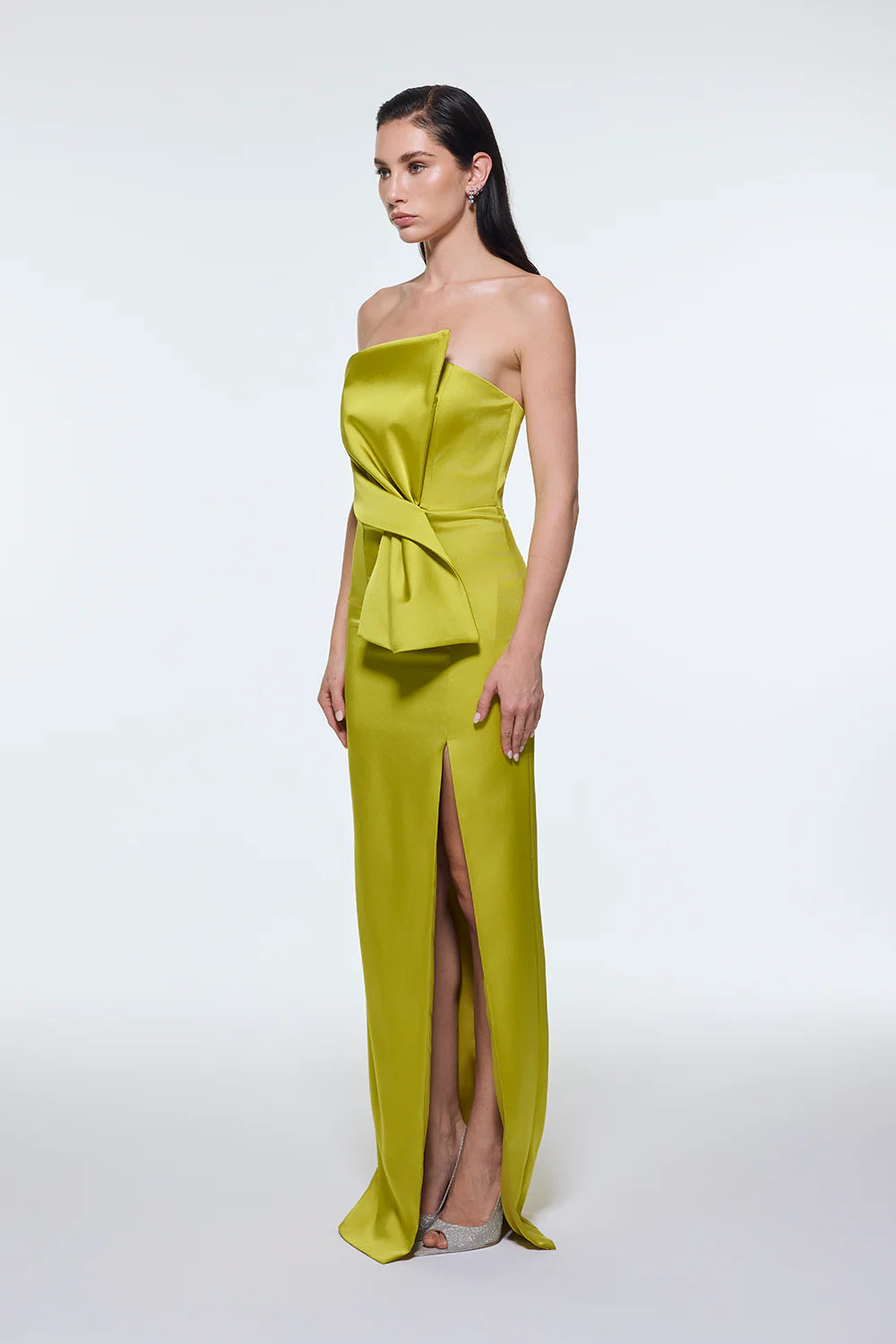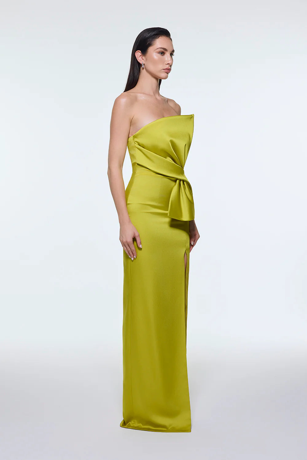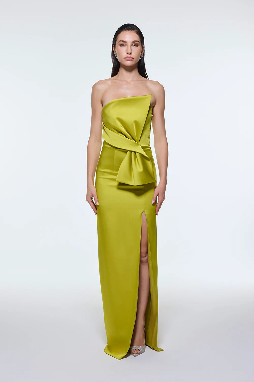 STRAPLEZ YAKA YIRTMAÇLI SATEN UZUN ABİYE ELBİSE - 9281C
