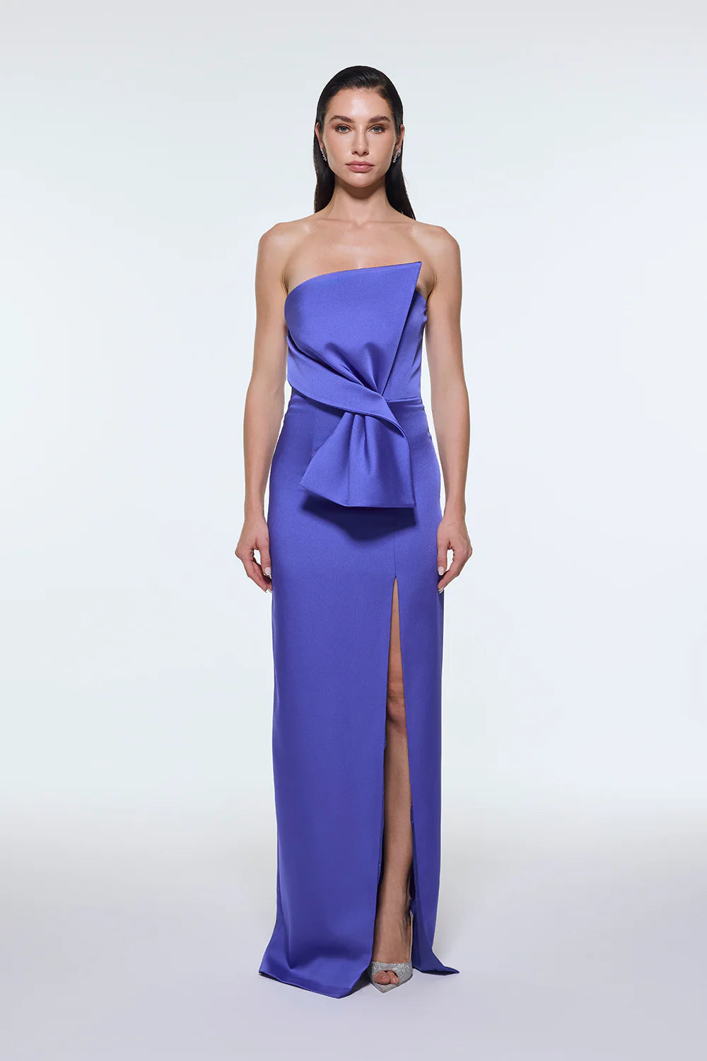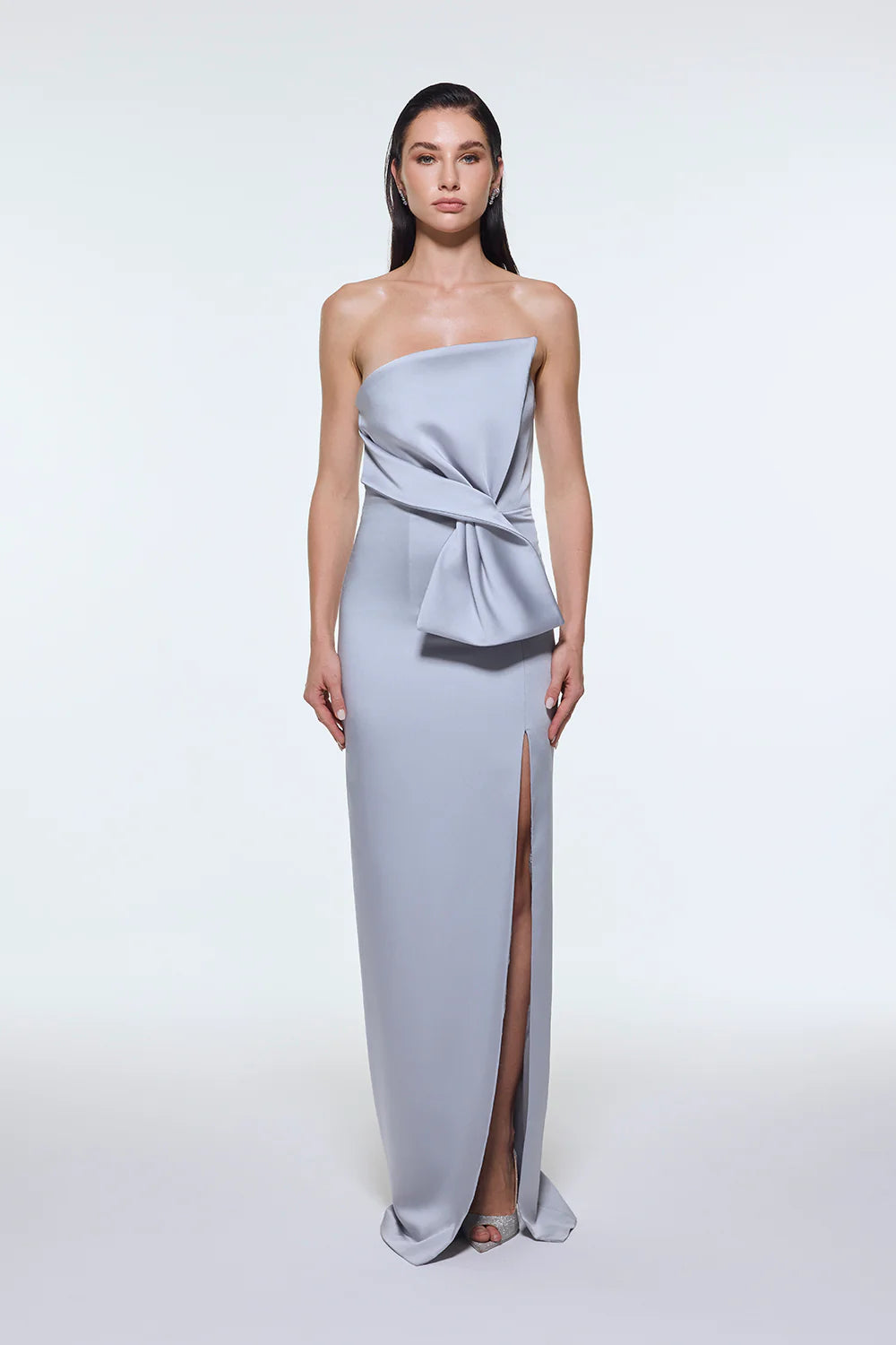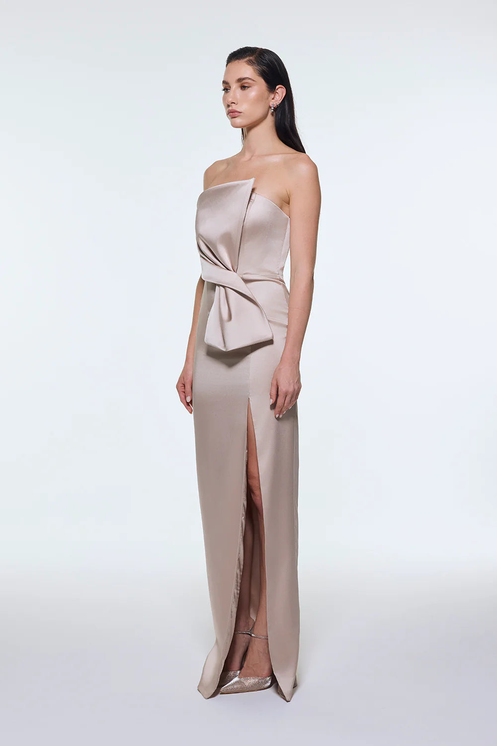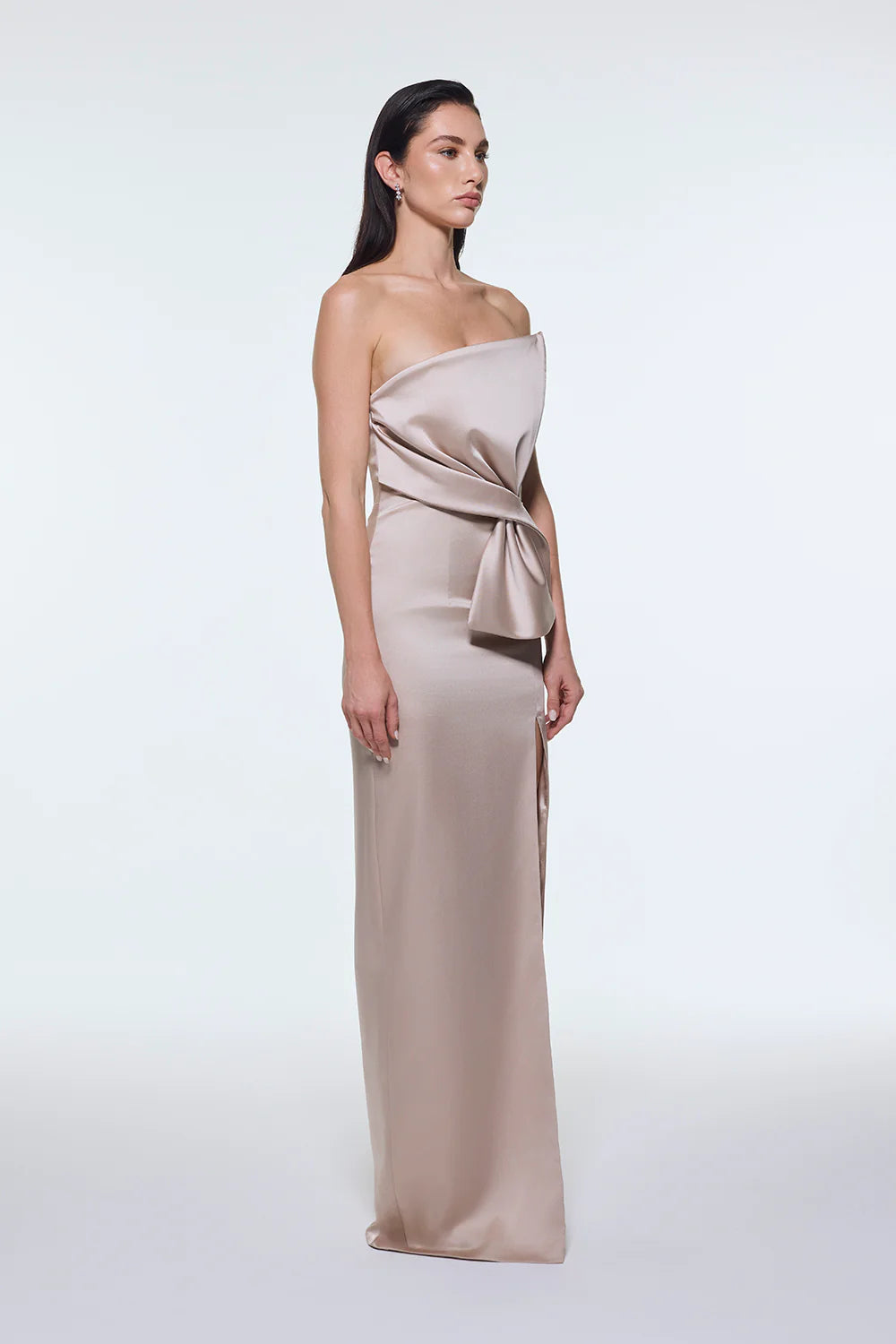 STRAPLEZ YAKA YIRTMAÇLI SATEN UZUN ABİYE ELBİSE - 9281C