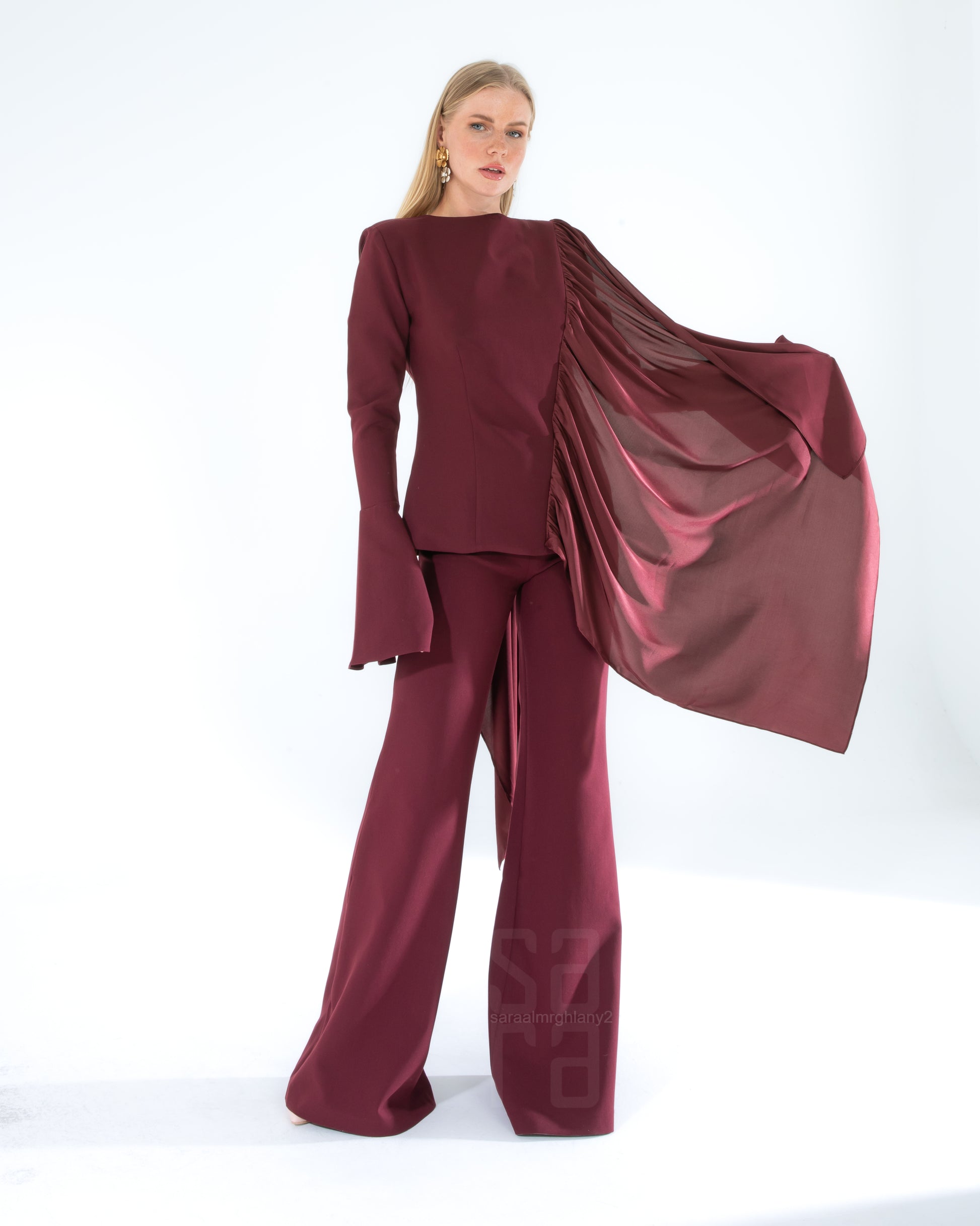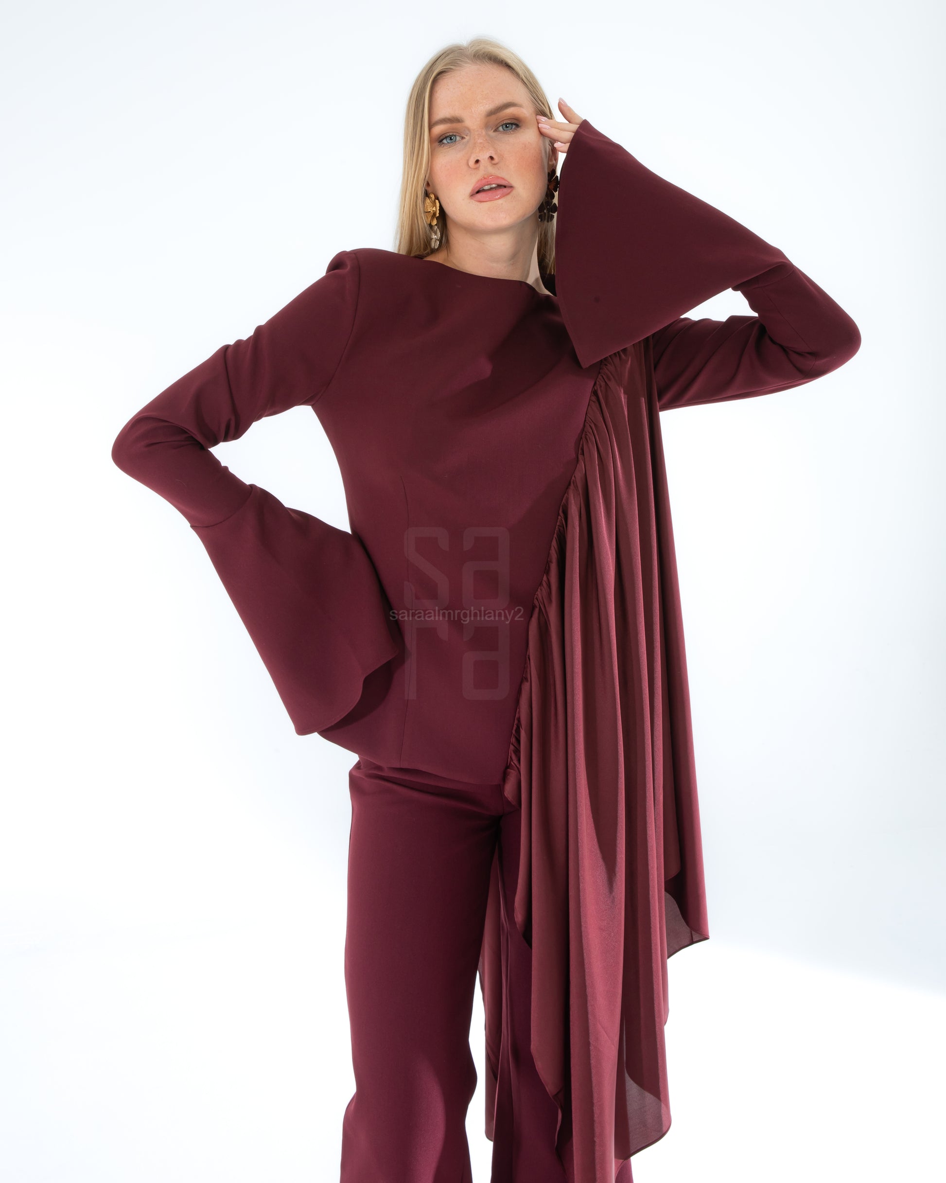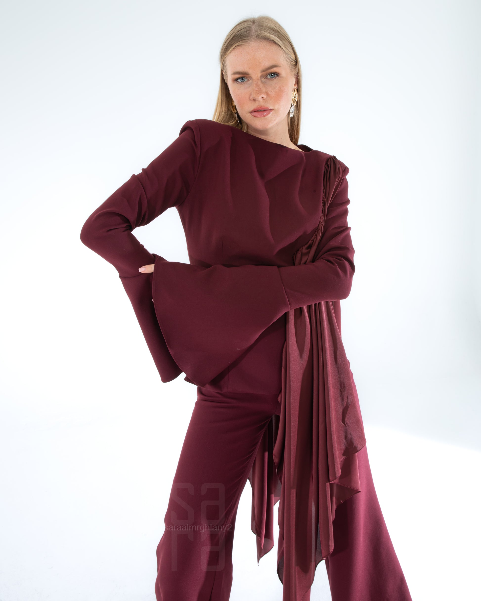 VolanlıYüksek Yaka Bluz Etek Takım 2213