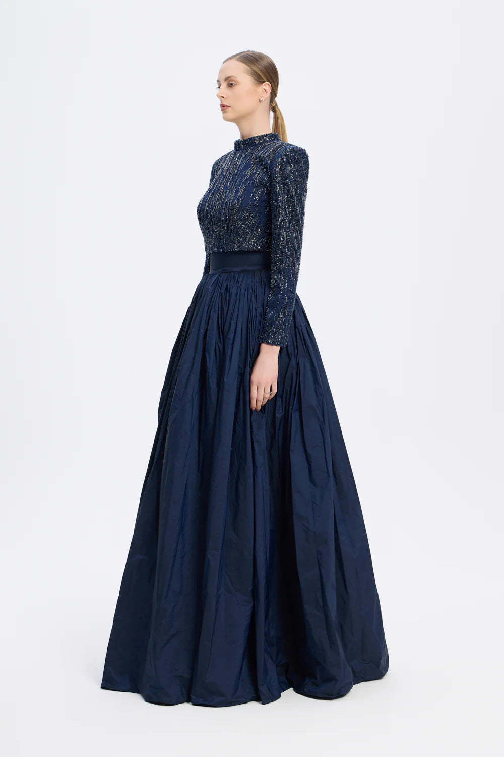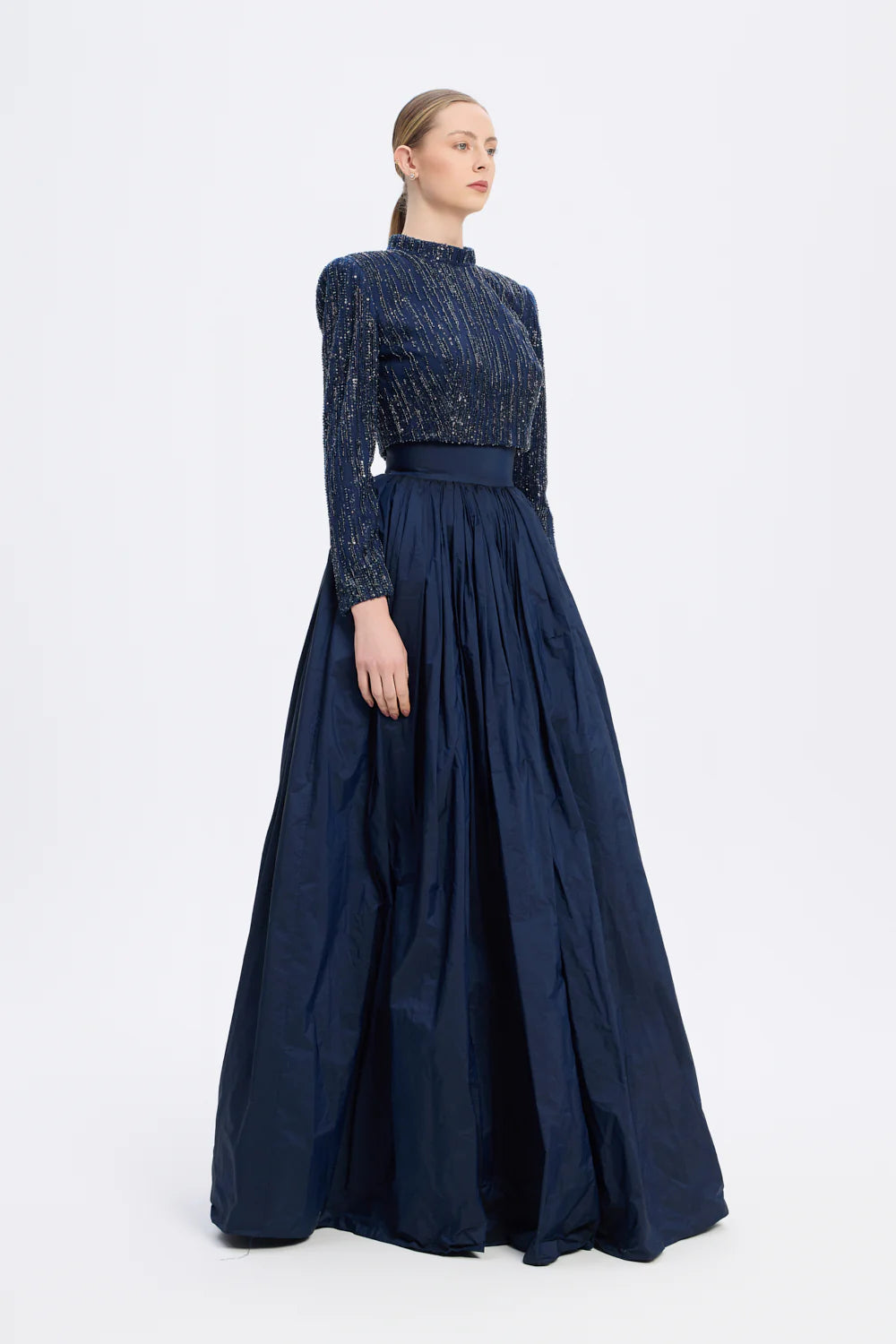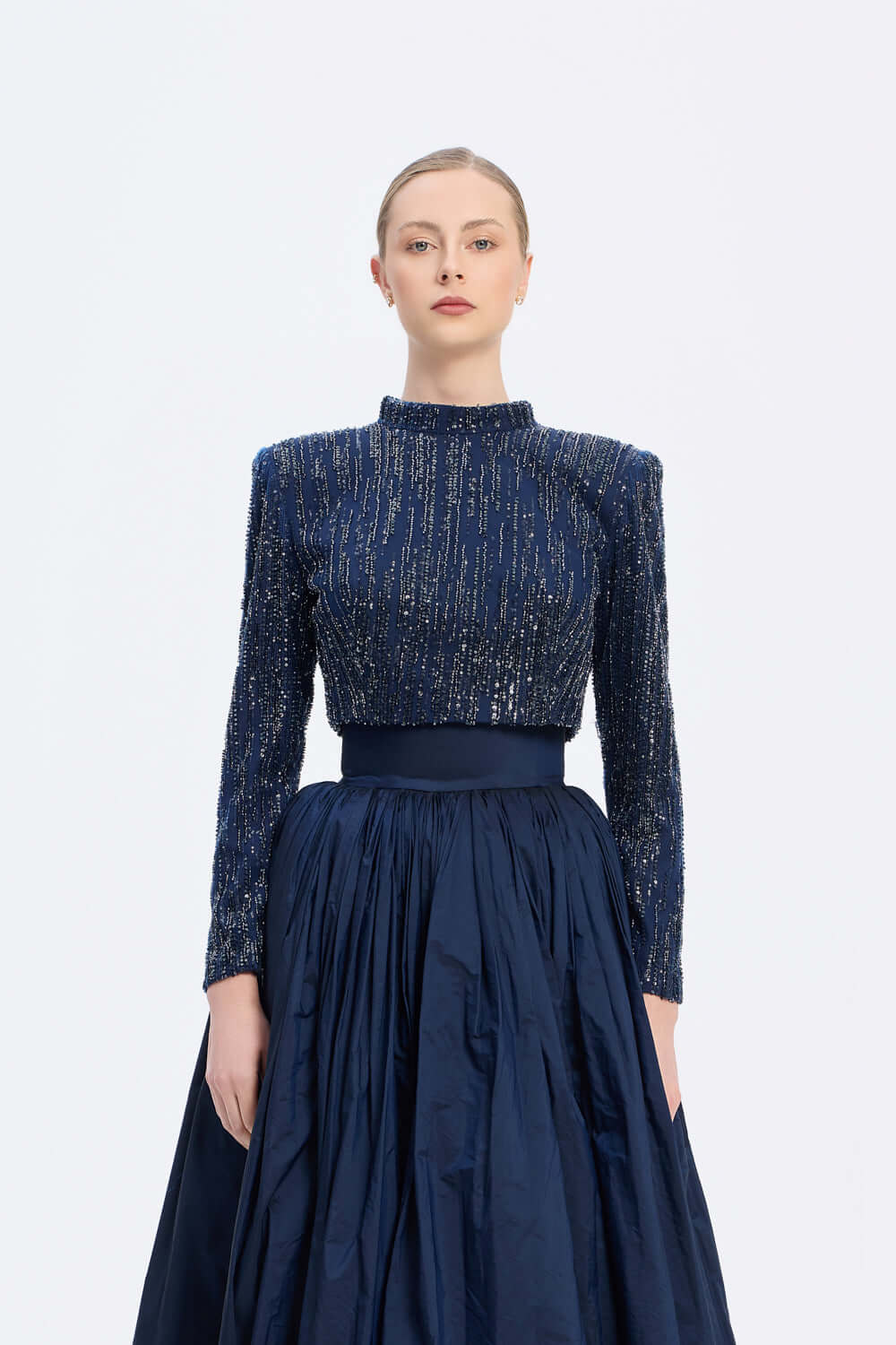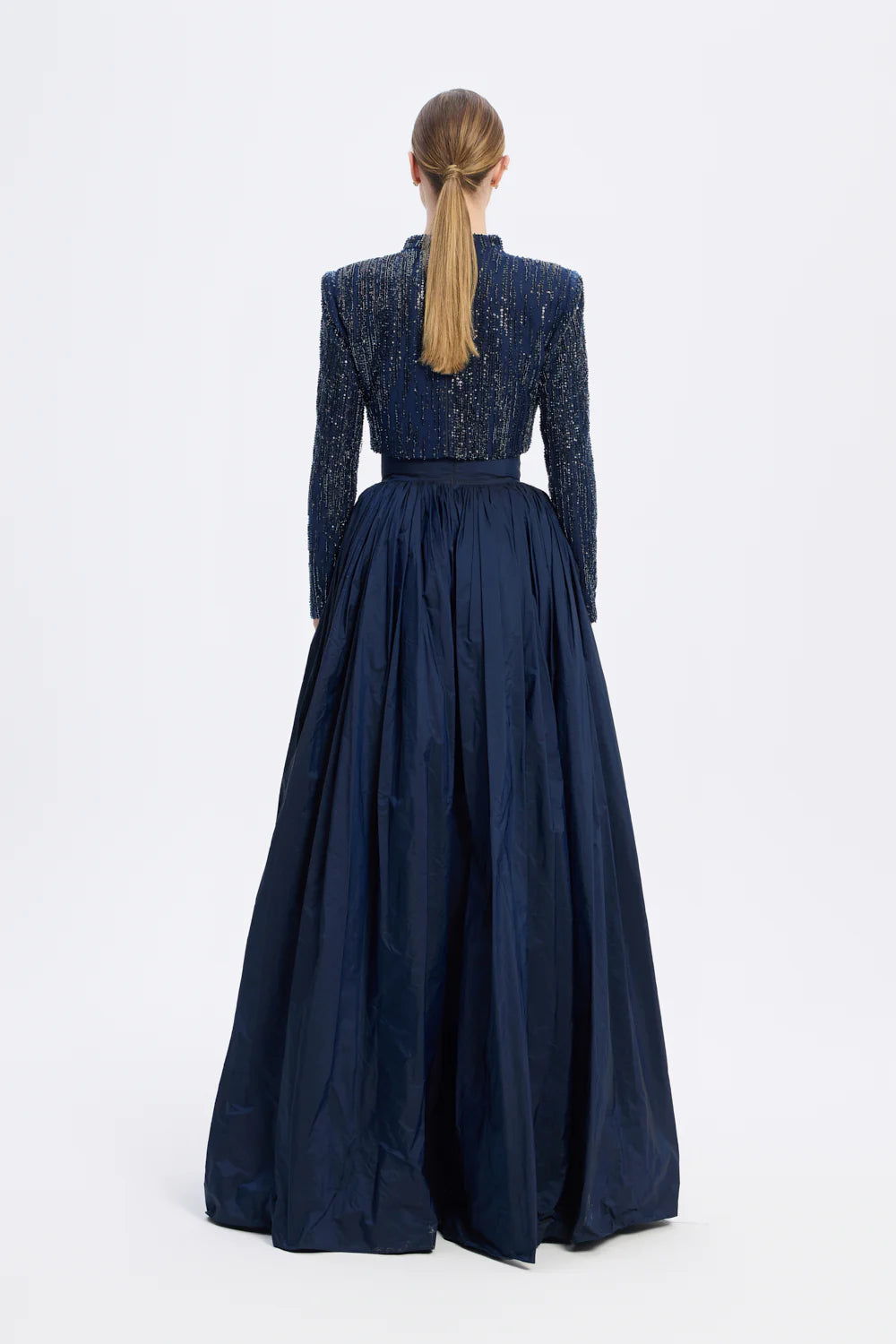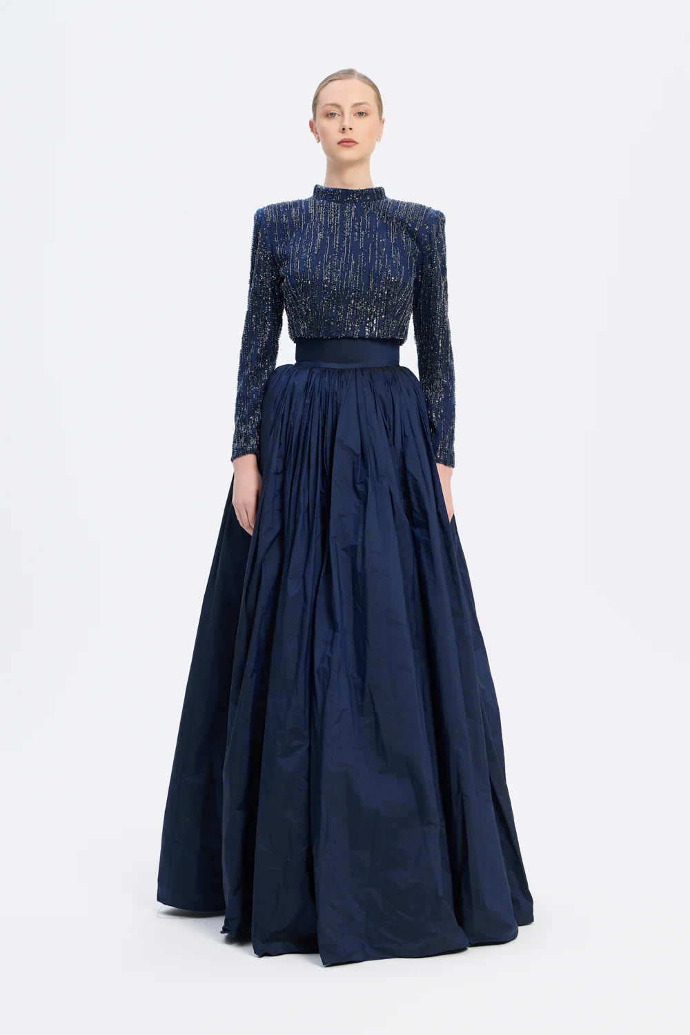UZUN KOLLU TAŞLI ÇEKET & TAFTA ETEK TAKIM - 9064C