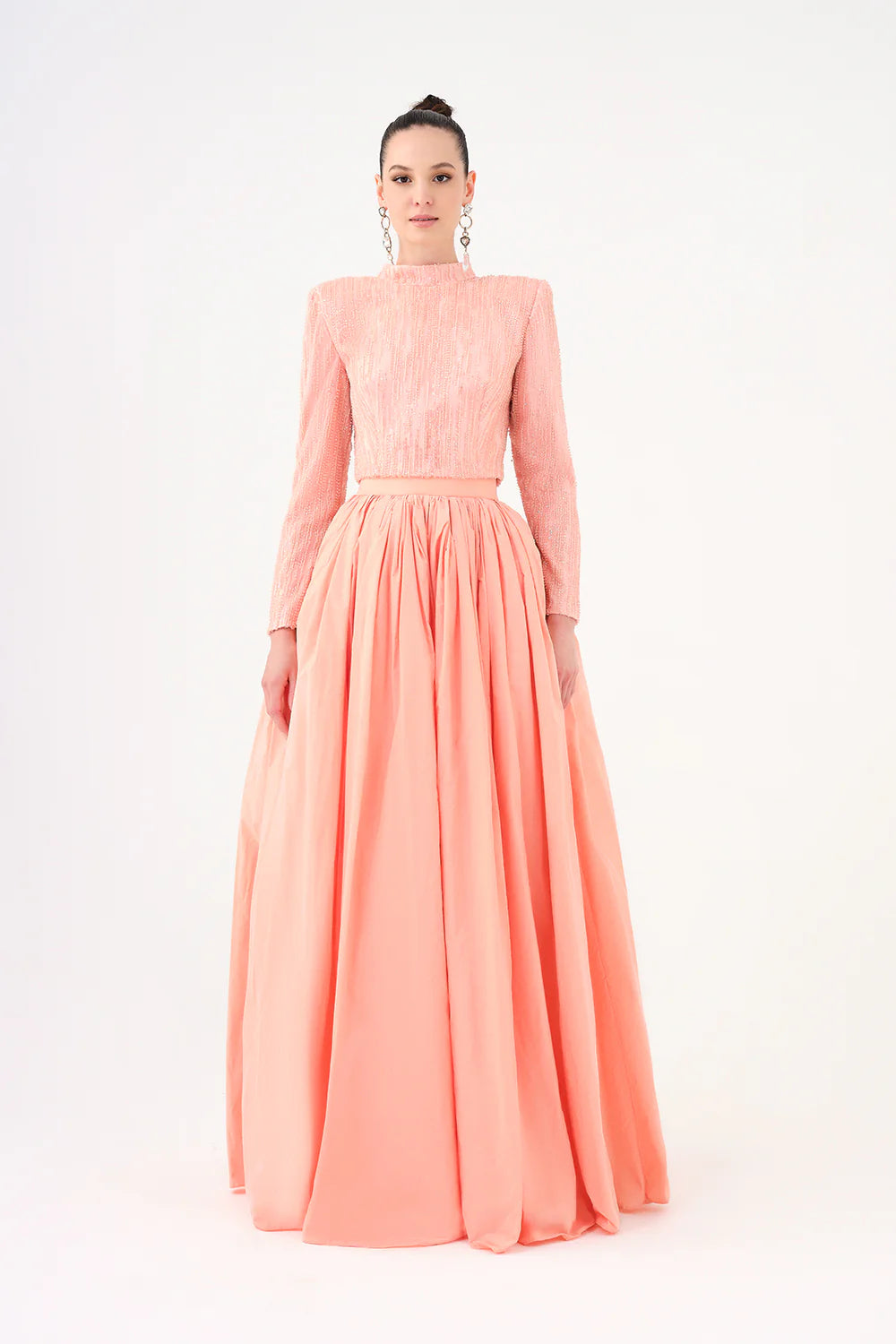 UZUN KOLLU TAŞLI ÇEKET & TAFTA ETEK TAKIM - 9064C