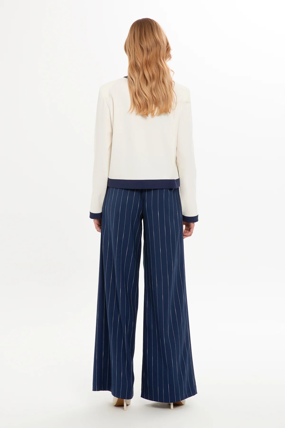 Yuvarlak Yaka Ceket Ve Pileli Pantolonlu Takım