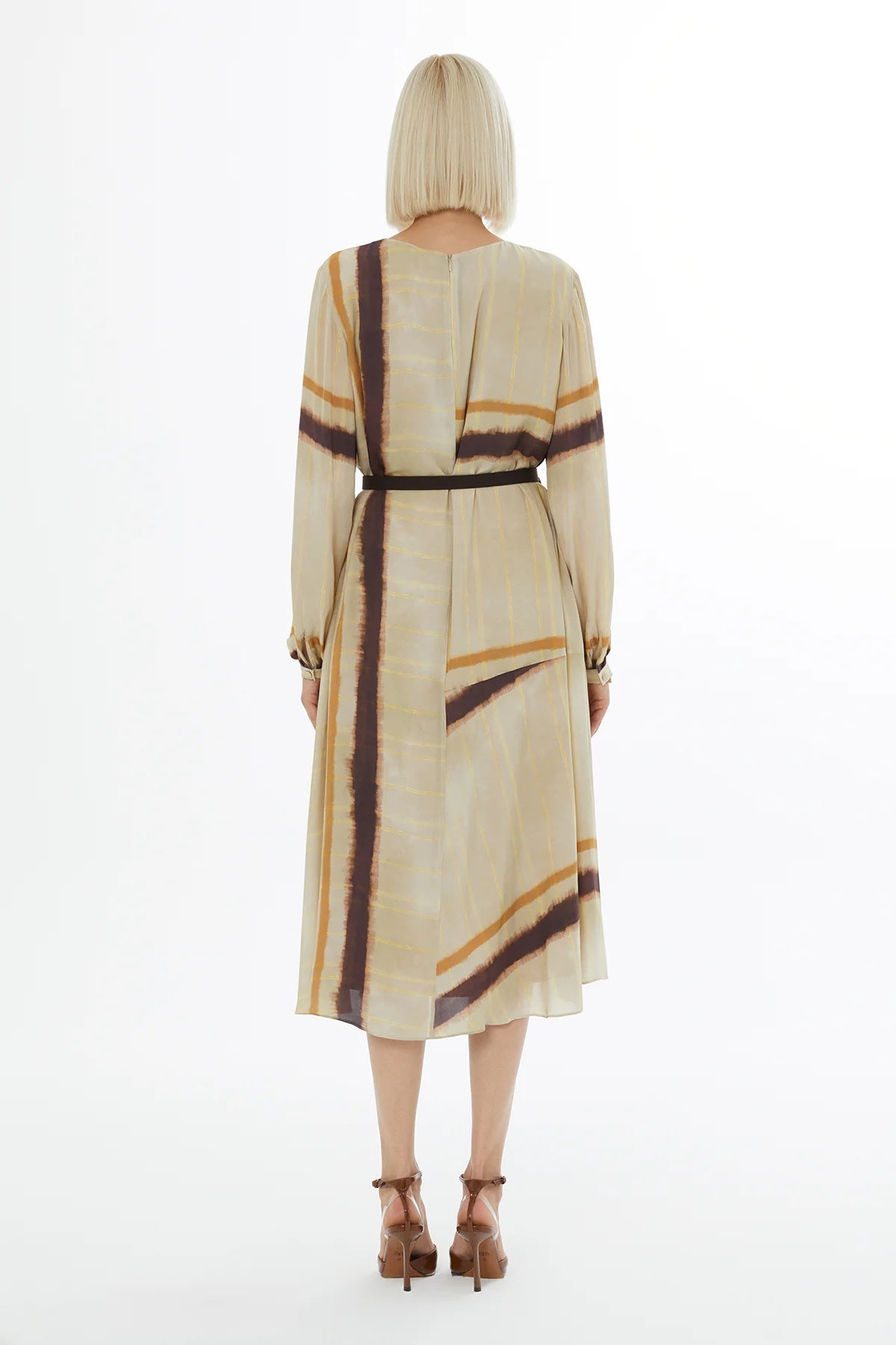 Yuvarlak Yaka Fermuar Kapamalı Midi Elbise