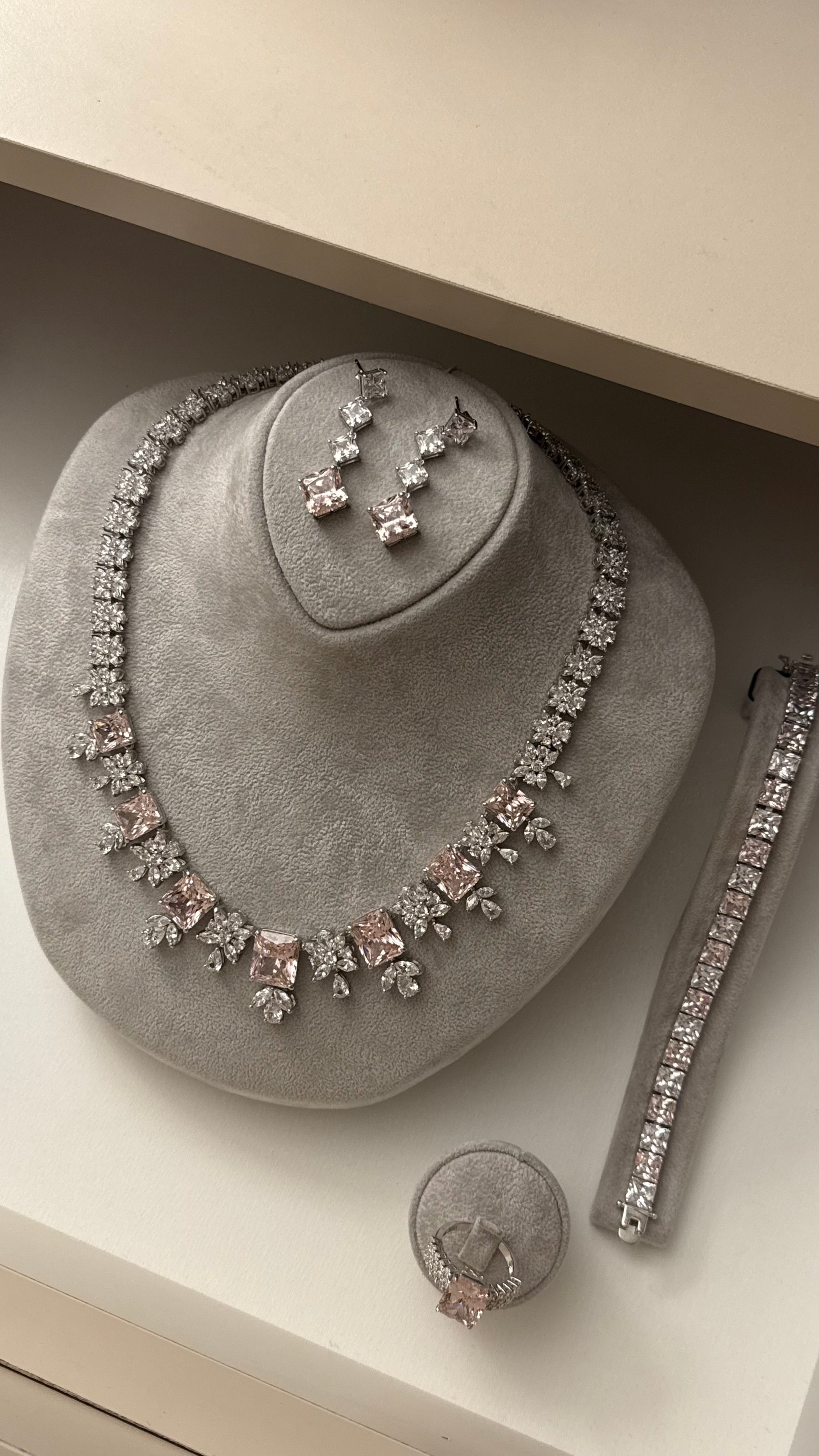 طقم أنيق بحجر التوباز الوردي – فضة عيار 925