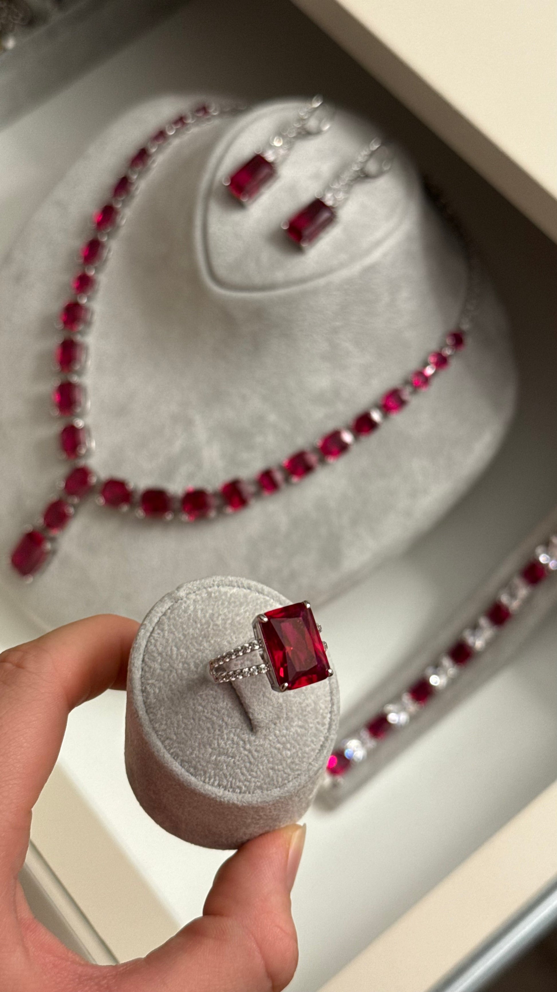 طقم ملكي بحجر الروبي الأحمر – فضة عيار 925