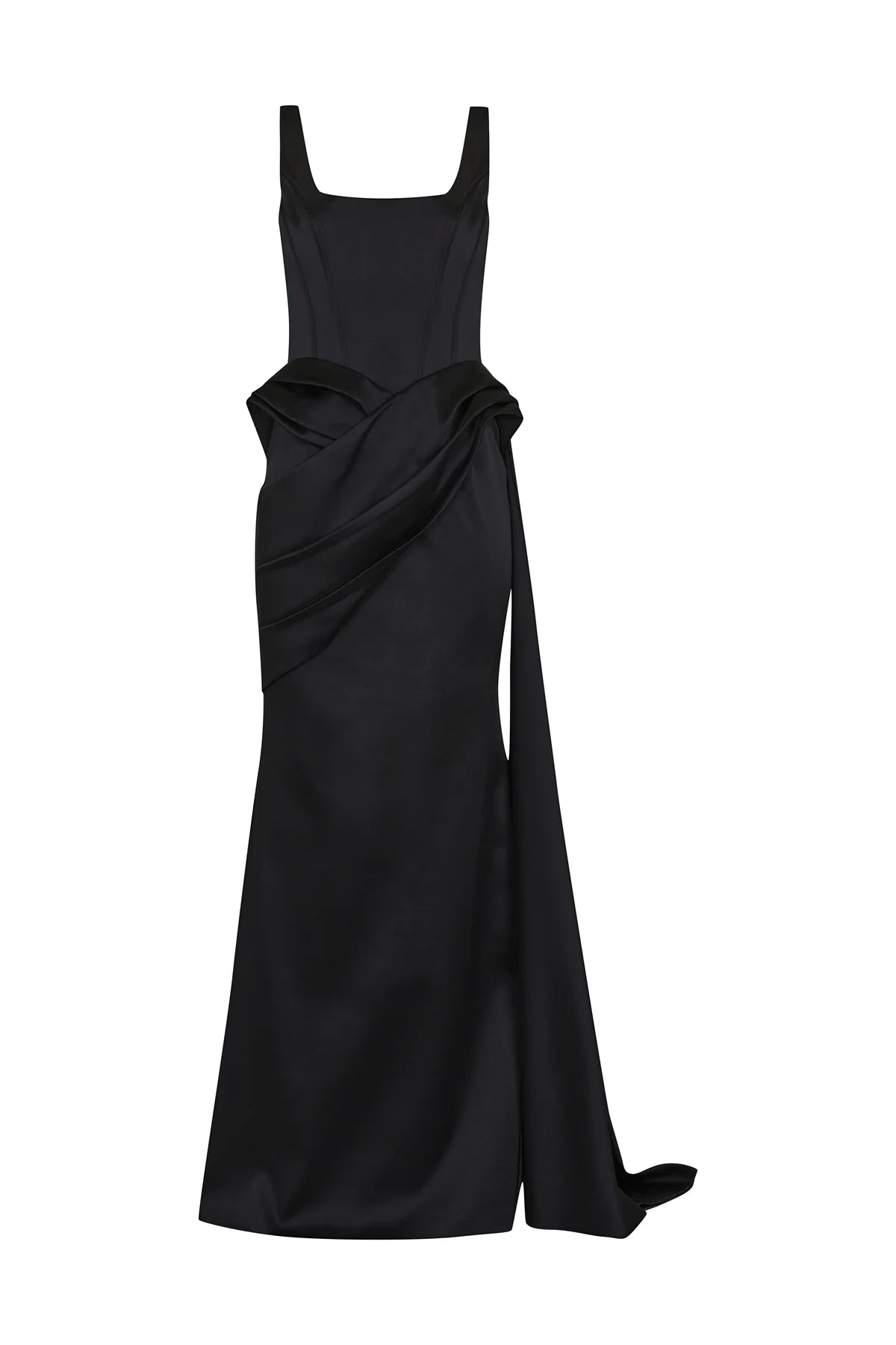 KARE YAKA VE DRAPELİ BEL DETAYLI BALIK ABİYE ELBİSE 2104