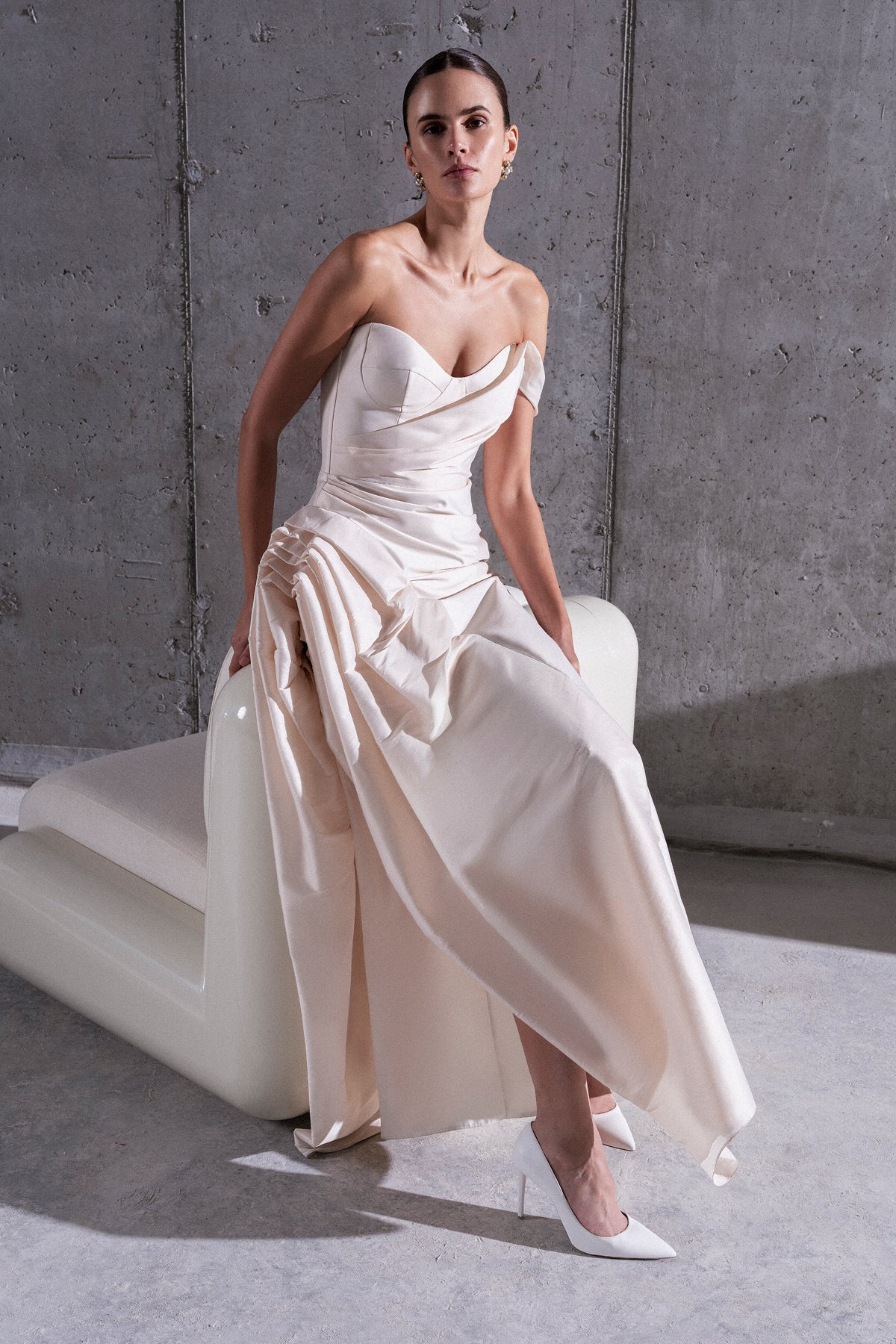 STRAPLEZ DRAPELİ SATEN UZUN ABİYE ELBİSE 2103