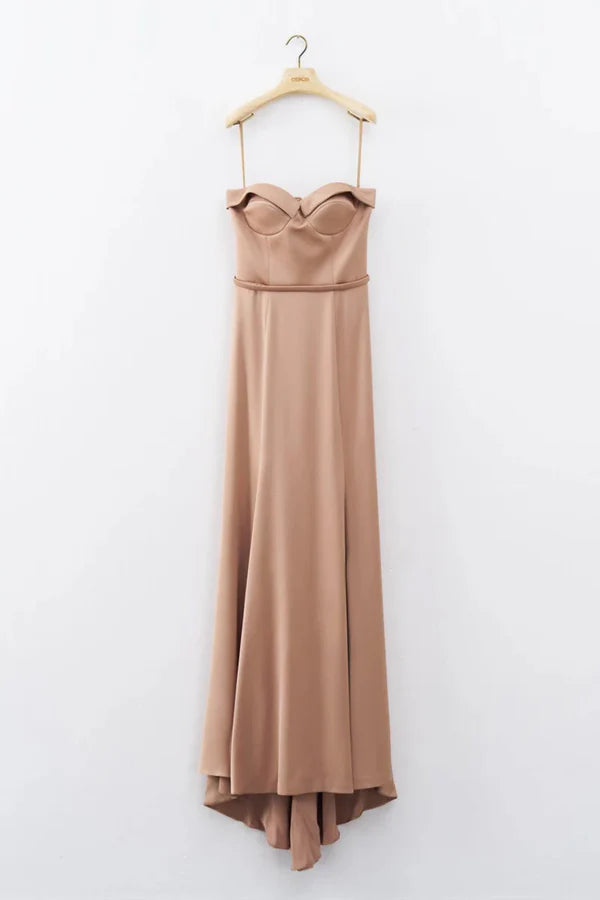 STRAPLEZ GÖĞÜS GLOPLU UZUN ABİYE ELBİSE